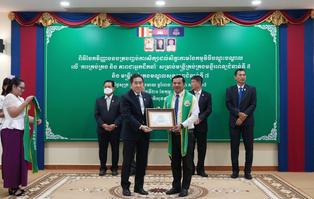 ពិធីចែកវិញ្ញាបនបត្របញ្ចប់ការសិក្សាដល់សិក្ខាកាមនៃវគ្គបណ្តុះបណ្តាល ការគ្រប់គ្រង និងភាពជាអ្នកដឹកនាំ សម្រាប់មន្រ្តីគ្រប់គ្រងមណ្ឌលសុខភាព និងមន្ទីរពេទ្យ