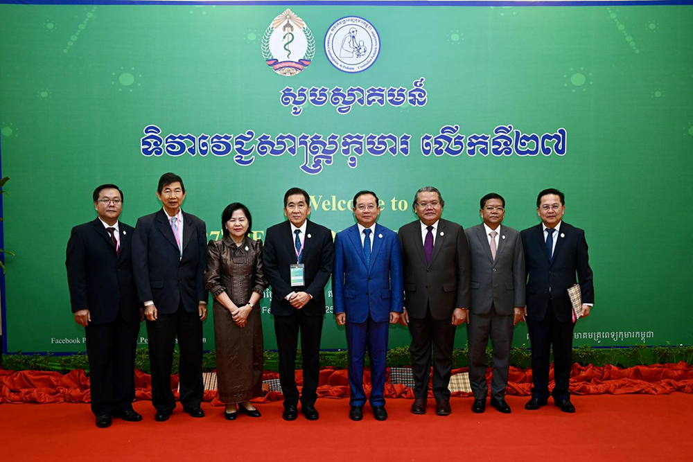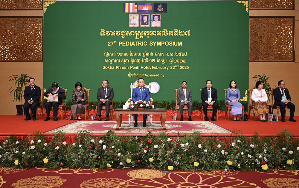 AKP ភ្នំពេញ ថ្ងៃទី២២ ខែកុម្ភៈ ឆ្នាំ២០២៥-- ឯកឧត្តមសាស្ត្រាចារ្យ ឈាង រ៉ា រដ្ឋមន្ត្រីក្រសួងសុខាភិបាល បានអញ្ជើញជាអធិបតីក្នុងពិធីបើកទិវាវេជ្ជសាស្រ្តកុមារលើកទី២៧ ឆ្នាំ២០២៥ (27th Cambodian Pediatric Symposium) នាព្រឹកថ្ងៃសៅរ៍ ទី២២ ខែកុម្ភៈ ឆ្នាំ២០២៥ ដោយមានការអញ្ជើញចូលរួមពីឯកឧត្តម លោកជំទាវ ថ្នាក់ដឹកនាំក្រសួង លោក លោកស្រី សមាជិក សមាជិកា សមាគមគ្រូពេទ្យកុមារកម្ពុជា និងក្រុមគ្រូពេទ្យនៅតាមមន្ទីរពេទ្យនានា ផ្នែកវេជ្ជសាស្រ្តកុមារ។
