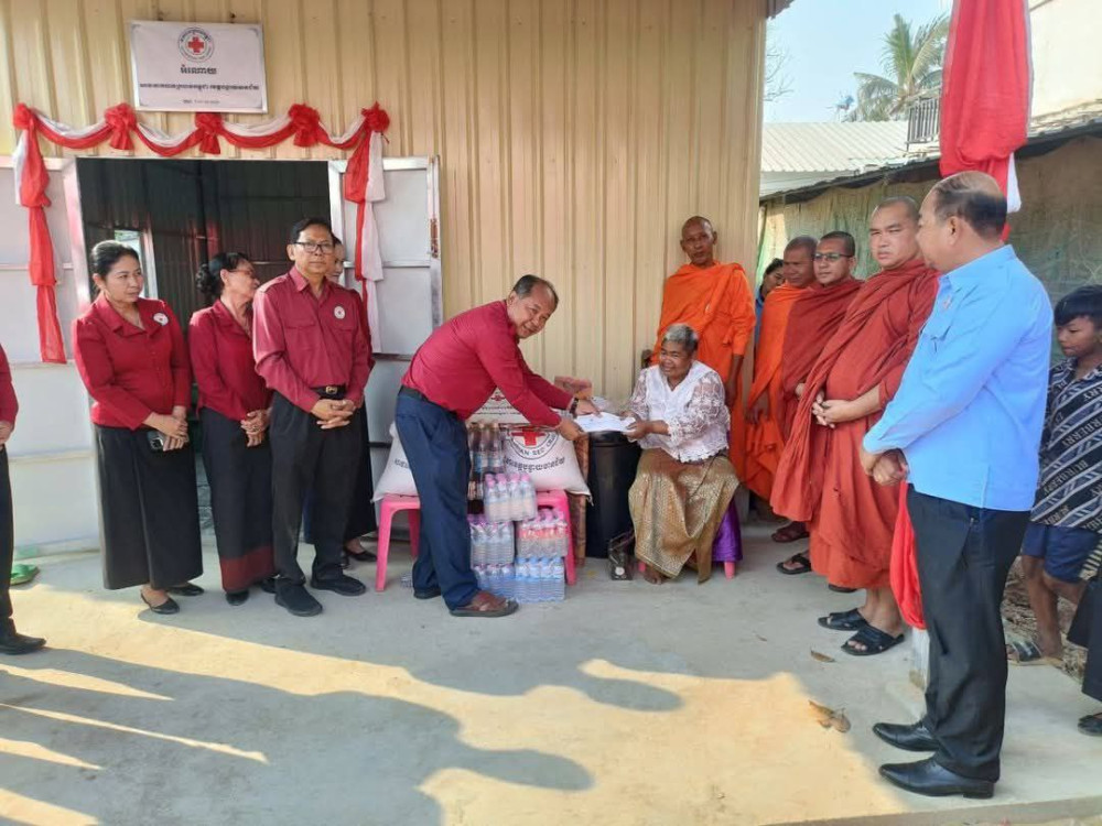 AKP បន្ទាយមានជ័យ ថ្ងៃទី២២ ខែកុម្ភៈ ឆ្នាំ២០២៥-- ឯកឧត្តម អ៊ុ រាត្រី អភិបាលខេត្តបន្ទាយមានជ័យ និងជាប្រធានគណៈកម្មាធិការសាខាកាកបាទក្រហមខេត្ត ដោយមានការនិមន្តចូលរួមពីព្រះសង្ឃ បានដឹកនាំក្រុមការងារអាជ្ញាធរមូលដ្ឋាន បានប្រគល់ផ្ទះមនុស្សធម៌ទី១៨ ជូនលោកស្រី ឯក សារ៉ូ អាយុ ៤៩ឆ្នាំ មានមុខរបរដើររើសអេតចាយ មានទីលំនៅក្នុងភូមិប្រជាធម្មលិច សង្កាត់ផ្សារកណ្តាល ក្រុងប៉ោយប៉ែត នៅព្រឹកថ្ងៃសៅរ៍ ទី២២ ខែកុម្ភៈ ឆ្នាំ២០២៥។