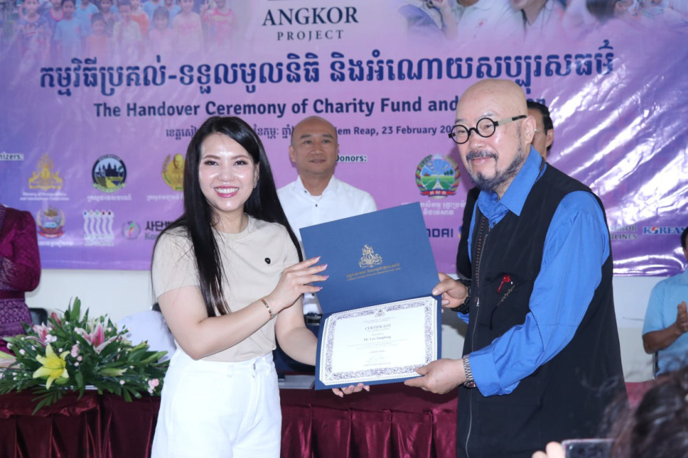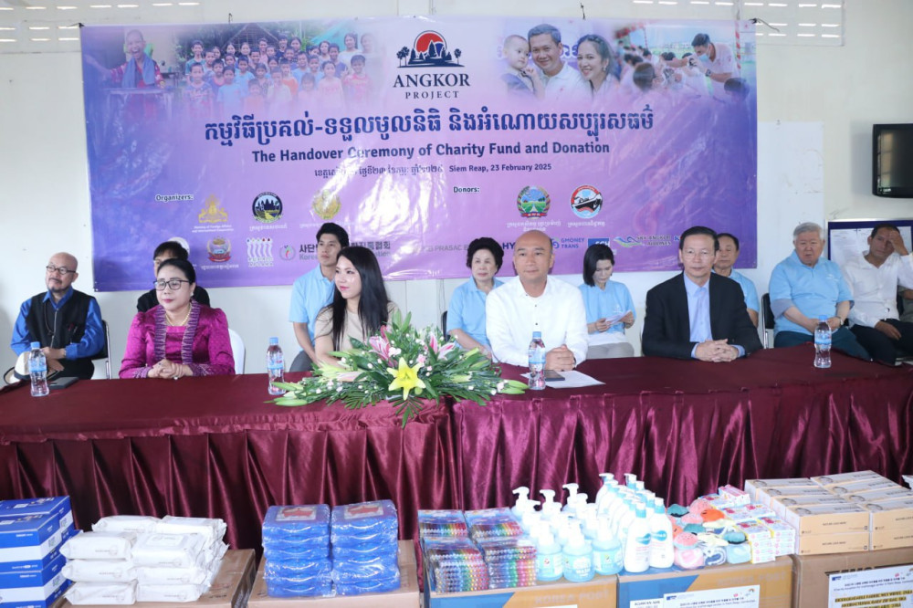 AKP សៀមរាប ថ្ងៃទី២៤ ខែកុម្ភៈ ឆ្នាំ២០២៥-- ថវិកាចំនួន២៦ពាន់ដុល្លារអាមេរិក រួមទាំងសម្ភារសិក្សា និងគ្រឿងសម្អាតអនាម័យខ្លួនប្រាណមួយចំនួន ដែលជាអំណោយរបស់សប្បុរសជន ជនជាតិកូរ៉េ ត្រូវបានគេនាំយកទៅប្រគល់ជូនមជ្ឈមណ្ឌលកុមារកំព្រាខេត្តសៀមរាប ស្ថិតក្នុងភូមិជ័យ សង្កាត់ទឹកវិល ក្រុងសៀមរាប ខេត្តសៀមរាប កាលពីថ្ងៃទី២៣ ខែកុម្ភៈ ឆ្នាំ២០២៥ ក្រោមអធិបតីភាពលោកជំទាវ ជ្រឹង បុទុមរង្សី ឯកអគ្គរាជទូតកម្ពុជាប្រចាំសាធារណរដ្ឋកូរ៉េ និងលោក យុន លីនណេ អភិបាលរងខេត្តសៀមរាប។