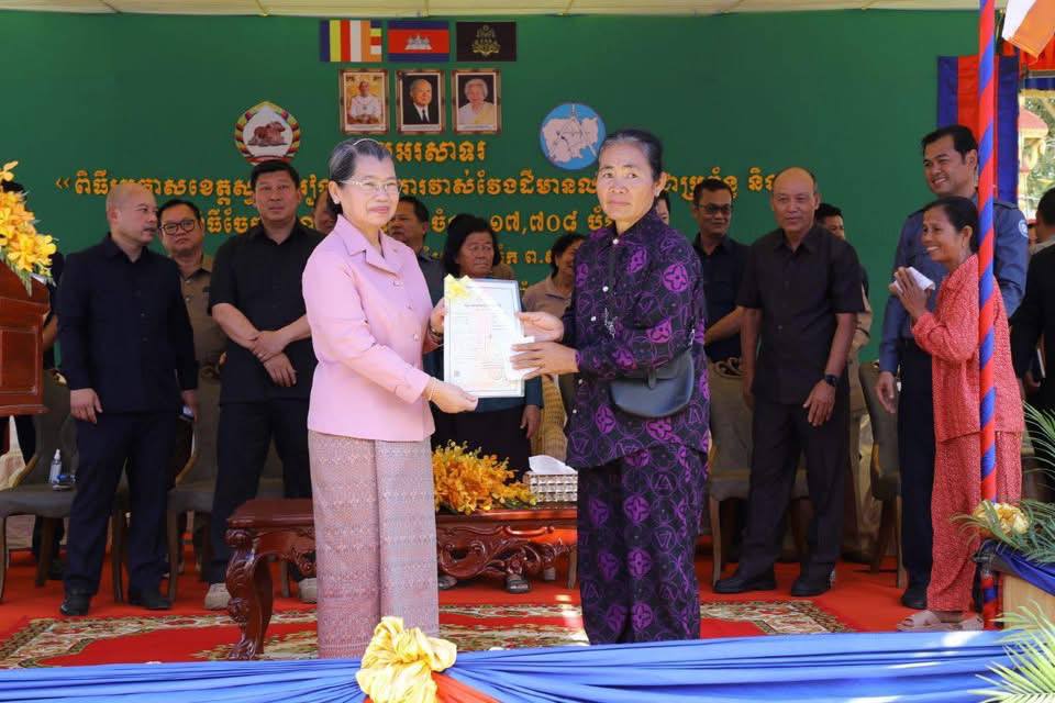 AKP ស្វាយរៀង ថ្ងៃទី២៤ ខែកុម្ភៈ ឆ្នាំ២០២៥-- សម្តេចកិត្តិសង្គហបណ្ឌិត ម៉ែន សំអន ឧត្តមប្រឹក្សាផ្ទាល់ព្រះមហាក្សត្រ បានអញ្ជើញជាអធិបតីក្នុងពិធីប្រកាសខេត្តស្វាយរៀងជាខេត្ដ បញ្ចប់ការវាស់វែងដីធ្លីជាលក្ខណៈប្រព័ន្ធ និងពិធីចែកបណ្ណកម្មសិទ្ធដីធ្លីចំនួន១៧.៧០៨បណ្ណ ជូនប្រជាពលរដ្ឋ នៅវត្តបុសមនលើ ស្ថិតក្នុងឃុំបុសមន ស្រុករំដួល ខេត្តស្វាយរៀង នាព្រឹកថ្ងៃចន្ទ ទី២៤ ខែកុម្ភៈ ឆ្នាំ២០២៥។