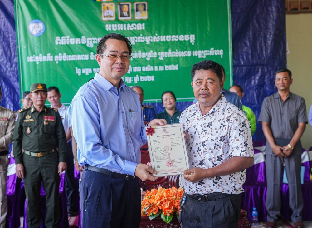 AKP ព្រះសីហនុ ថ្ងៃទី២៥ ខែកុម្ភៈ ឆ្នាំ២០២៥-- ឯកឧត្តម ម៉ាង ស៊ីណេត អភិបាលនៃគណៈអភិបាលខេត្តព្រះសីហនុ បានអញ្ជើញជាគណៈអធិបតីចែកវិញ្ញាបនបត្រសម្គាល់ម្ចាស់អចលនវត្ថុជូនប្រជាពលរដ្ឋចំនួន៣ភូមិ ក្នុងនោះភូមិគគីរ ភូមិចំណោតរាម និងភូមិពូធឿង ដោយមានការចូលរួមពីលោកអភិបាលរងខេត្ត លោកអភិបាលក្រុងកំពង់សោម ប្រធានមន្ទីរ អង្គភាពក្នុងខេត្តព្រះសីហនុ នៅបរិវេណវត្តគិរីសុខារាម សង្កាត់បិតត្រាំង ក្រុងកំពង់សោម ខេត្តព្រះសីហនុ នាព្រឹកថ្ងៃអង្គារ ទី២៥ ខែកុម្ភៈ ឆ្នាំ២០២៥។