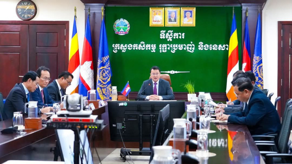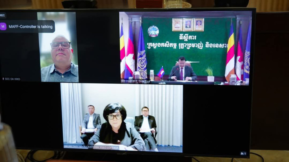 ឯកឧត្តម ឌិត ទីណា រដ្ឋមន្ត្រីក្រសួងកសិកម្ម រុក្ខាប្រមាញ់ និងនេសាទ បានអញ្ជើញចូលរួមប្រជុំពិភាក្សាការងារលើការជំរុញកិច្ចសហប្រតិបត្តិការទ្វេភាគីជាមួយ ឯកឧត្តមរដ្ឋមន្ត្រីក្រសួងកសិកម្មនៃសាធារណរដ្ឋហ្វីលីពីន តាមប្រព័ន្ធវីដេអូហ្សូម(Zoom) នៅទីស្តីការក្រសួងកសិកម្ម រុក្ខាប្រមាញ់ និងនេសាទ។