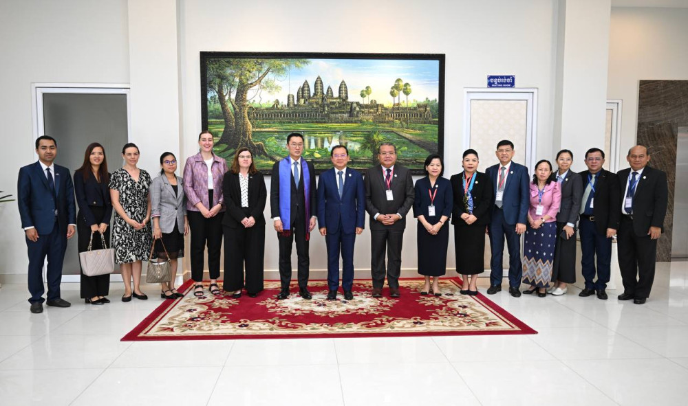 AKP ភ្នំពេញ ថ្ងៃទី២៦ ខែកុម្ភៈ ឆ្នាំ២០២៥-- ឯកឧត្តមសាស្ត្រាចារ្យ ឈាង រ៉ា រដ្ឋមន្ត្រីក្រសួងសុខាភិបាល បានទទួលជួបសំដែងការគួរសម និងពិភាក្សាការងារជាមួយ ឯកឧត្តម Derek Yip ឯកអគ្គរដ្ឋទូតប្រទេសអូស្រ្តាលី ប្រចាំព្រះរាជាណាចក្រកម្ពុជា និងគណៈប្រតិភូ នាព្រឹកថ្ងៃទី២៦ ខែកុម្ភៈ ឆ្នាំ២០២៥ នៅទីស្តីការក្រសួងសុខាភិបាល។