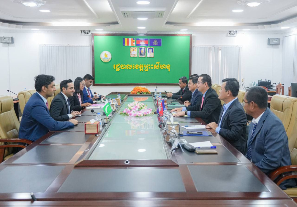 ឯកឧត្តមអភិបាលខេត្តព្រះសីហនុបានស្វាគមន៍ឯកអគ្គរដ្ឋទូតប៉ាគីស្ថានប្រចាំព្រះរាជាណាចក្រកម្ពុជា ដែលឯកឧត្តមបានមកទស្សនកិច្ចនៅខេត្តព្រះសីហនុ និងអបអរសាទរខួបទី៧៣ នៃទំនាក់ទំនងកិច្ចសហប្រតិបត្តិការប្រទេសទាំងពីរកម្ពុជា ប៉ាគីស្ថាន ព្រមទាំងបានជម្រាបជូនពីសក្តានុពល វិទ្យាសាស្ត្រ និងភូមិសាស្ត្ររបស់ខេត្តព្រះសីហនុ ស្ថិតនៅភាគនារតី នៃប្រទេសកម្ពុជា ខេត្តមាន ៦ក្រុង ស្រុក ២៩ឃុំ សង្កាត់ និង ១១១ភូមិ មានកោះតូច ធំ ៣២ ថ្មដុះ១ ថ្មប៉ប្រេះទឹក៥ មានឧទ្យានជាតិលើគោក និងបាតសមុទ្រ មានឆ្នេរសមុទ្រស្រស់ស្អាតប្រវែង ១៧៥គីឡូម៉ែត្រ ទាំងអស់នេះជាកត្តាទាក់ទាញភ្ញៀវទេសចរឱ្យមកកម្សាន្តស្នាក់នៅខេត្តព្រះសីហនុ។ ខេត្តព្រះសីហនុជាខេត្តស្នូលនៃខេត្តទាំង៤នៃតំបន់ឆ្នេរសមុទ្ររបស់កម្ពុជា ទន្ទឹមនោះ ខេត្តមានសក្តានុពលធំៗចំនួន៣ ក្នុងនោះមានផ្លូវគោក ផ្លូវទឹក និងអាកាស។ ផ្លូវគោកមានផ្លូវជាតិលេខ៣ លេខ៤ ផ្លូវល្បឿនលឿន និងផ្លូវរថភ្លើង។ ផ្លូវអាកាស មានផ្លូវរត់ប្រវែង ៣ ៣០០ម៉ែត្រ វែងជាងនៅរាជធានីភ្នំពេញ។ ផ្លូវទឹកមានកំពង់ផែទឹកជ្រៅក្រុងព្រះសីហនុ បច្ចុប្បន្នកំពុងធ្វើការអភិវឌ្ឍជាបីដំណាក់កាលចាប់ពី២០២៤ ដល់ ២០២៩ ឱ្យមានជម្រៅទឹករហូត ១៧,៥០ម៉ែត្រ អាចនិយាយបានថា នាវាដែលធ្វើចរាចរណ៍នៅលើពិភពលោក អាចចូលចតបាន។