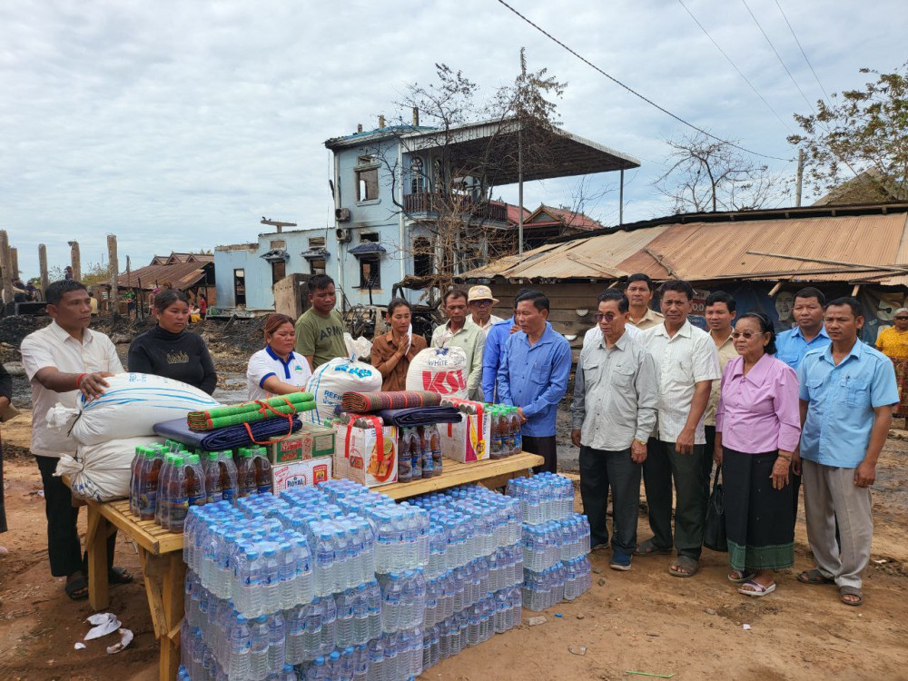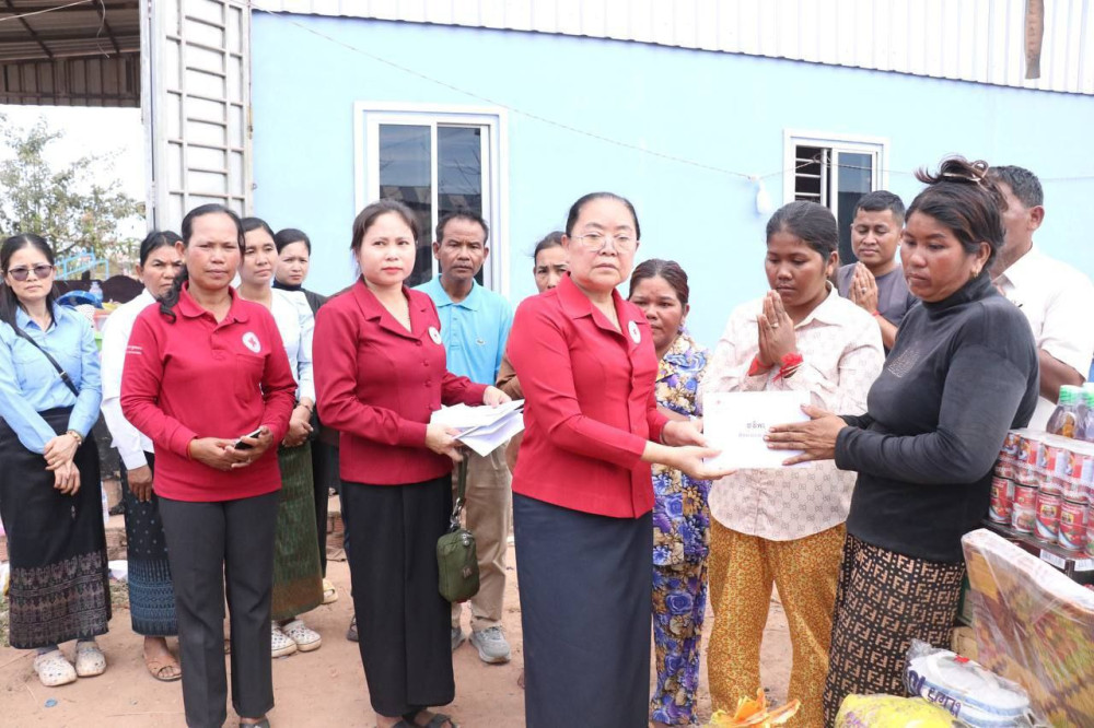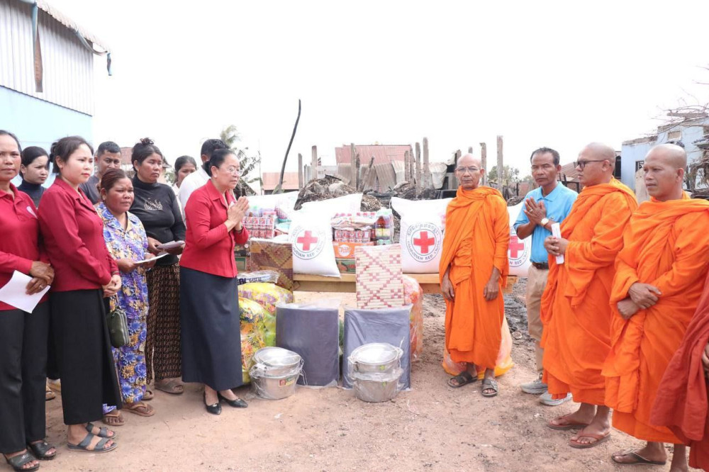 លោកស្រី លំ គន្ធារី នាំយកអំណោយមនុស្សធម៌កាកបាទក្រហមកម្ពុជាខេត្តកំពង់ធំផ្ដល់ជូនគ្រួសាររងគ្រោះដោយអគ្គិភ័យនៅស្រុកសណ្ដាន់