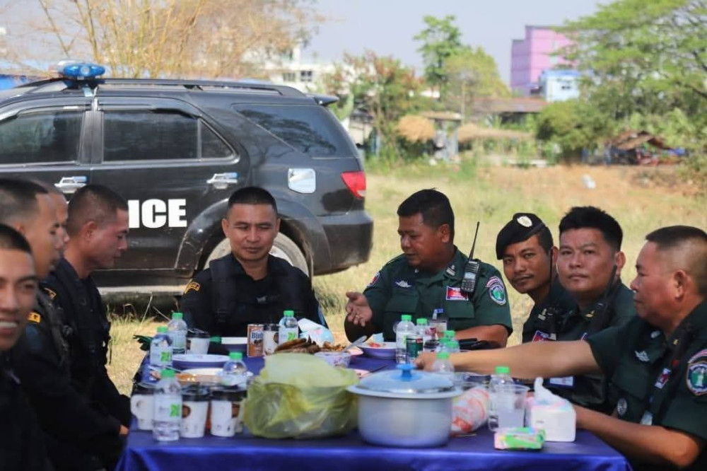 AKP បន្ទាយមានជ័យ ថ្ងៃទី២៨ ខែកុម្ភៈ ឆ្នាំ២០២៥--កងកម្លាំងប៉ុស្តិ៍នគរបាលវរសេនាតូចការពារព្រំដែនគោក៨៩១ នៅចំណុចក្បាលស្ពាន ក្នុងភូមិសាស្ត្រក្រុងប៉ោយប៉ែត ខេត្តបន្ទាយមានជ័យ ព្រះរាជាណាចក្រកម្ពុជា និងកម្លាំងកងអនុសេនាធំលេខ១៣០៤ ទាហានឈុតខ្មៅរបស់ព្រះរាជាណាចក្រថៃ បានបង្ហាញការប្តេជ្ញារួមគ្នាបន្តពង្រឹងទំនាក់ទំនងល្អទប់ស្កាត់រាល់បទល្មើសតាមខ្សែបន្ទាត់ព្រំដែន ដើម្បីធានាបានសុវត្ថិភាពសន្តិសុខជូនដល់ការរស់នៅរបស់ប្រជាពលរដ្ឋទាំងសងខាង ដែលបានធ្វើឡើងនៅក្នុងកិច្ចជំនួបពិភាក្សាការងារកាលពីថ្ងៃទី២៧ ខែកុម្ភៈ ឆ្នាំ២០២៥។