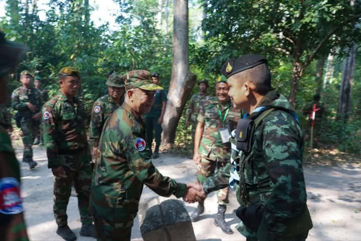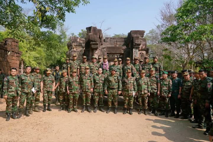 AKP ភ្នំពេញ ថ្ងៃទី០២ ខែមីនា ឆ្នាំ២០២៥-- នាយឧត្តមសេនីយ៍ ម៉ៅ សុផាន់ អគ្គមេបញ្ជាការរង មេបញ្ជាការកងទ័ពជើងគោក អមដំណើរដោយឧត្តមសេនីយ៍ឯក ហួត ឈាង មេបញ្ជាការរង នាយសេនាធិការកងទ័ពជើងគោក ព្រមទាំងថ្នាក់ដឹកនាំបញ្ជាការដ្ឋានកងទ័ពជើងគោក បានអញ្ជើញត្រួតពិនិត្យវឌ្ឍនភាពការងារ និងសាកសួរសុខទុក្ខកងទ័ពឈរជើងប្រចាំទិសទី១ និងទិសទី២ តាមខ្សែបន្ទាត់ព្រំដែនកម្ពុជា-ថៃ ចាប់ពីថ្ងៃទី២៥ ខែកុម្ភៈ ដល់ថ្ងៃទី០២ ខែមីនា ឆ្នាំ២០២៥។