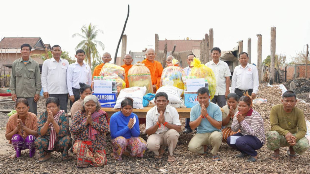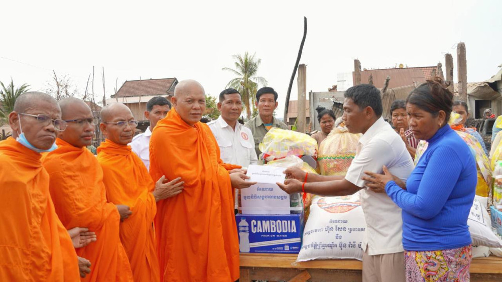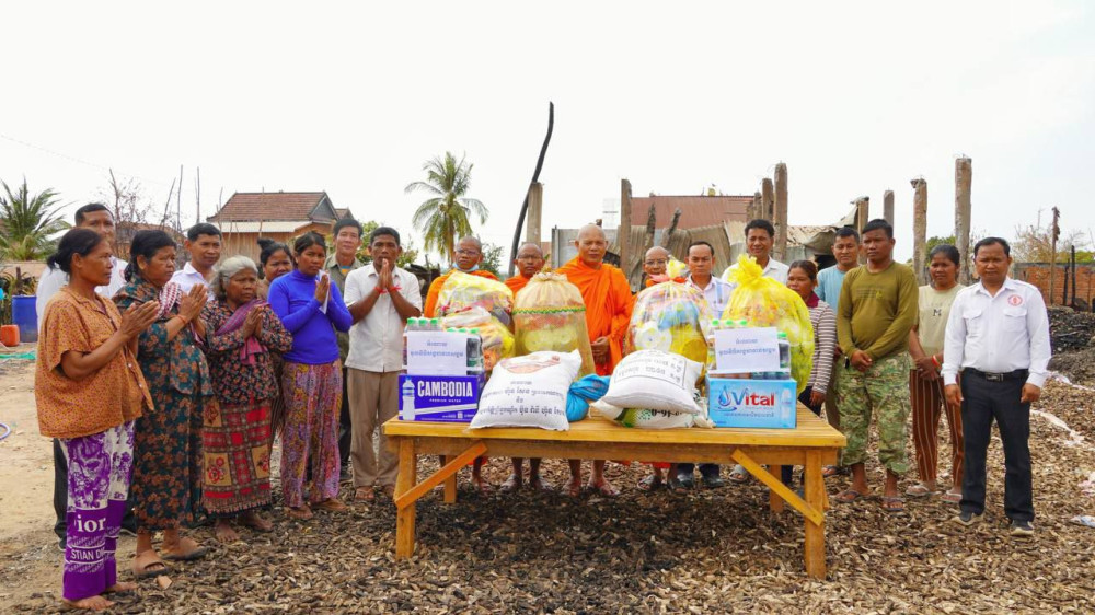 ព្រះមុនីធម្មវេទី ឡាំ អិត និងក្រុមការងារ នាំយកអំណោយមនុស្សធម៌ចែកជូនគ្រួសាររងគ្រោះដោយអគ្គិភ័យនៅស្រុកសណ្ដាន់