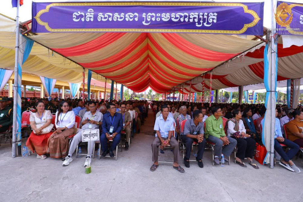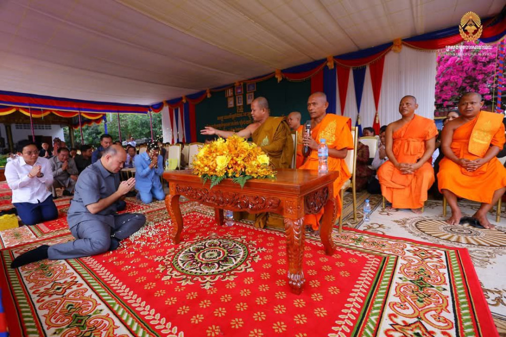 AKP ភ្នំពេញ ថ្ងៃទី០៣ ខែមីនា ឆ្នាំ២០២៥-- ឯកឧត្តម ហ៊ុន ម៉ានី ឧបនាយករដ្ឋមន្រ្តី រដ្ឋមន្រ្តីក្រសួងមុខងារសាធារណៈ តំណាងដ៏ខ្ពង់ខ្ពស់សម្តេចមហាបវរធិបតី ហ៊ុន ម៉ាណែត នាយករដ្ឋមន្ត្រី នៃព្រះរាជាណាចក្រកម្ពុជា បានអញ្ជើញជាអធិបតីក្នុងពិធីសម្ពោធសមិទ្ធផលនានាក្នុងវត្តក្នុងវត្តអូរព័ទ្ធ ស្ថិតក្នុងភូមិស្រមោចហែ ឃុំចំបក់ ស្រុកបាទី ខេត្តតាកែវ កាលពីថ្ងៃទី០២ ខែមីនា ឆ្នាំ២០២៥។