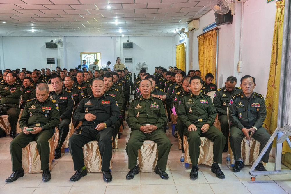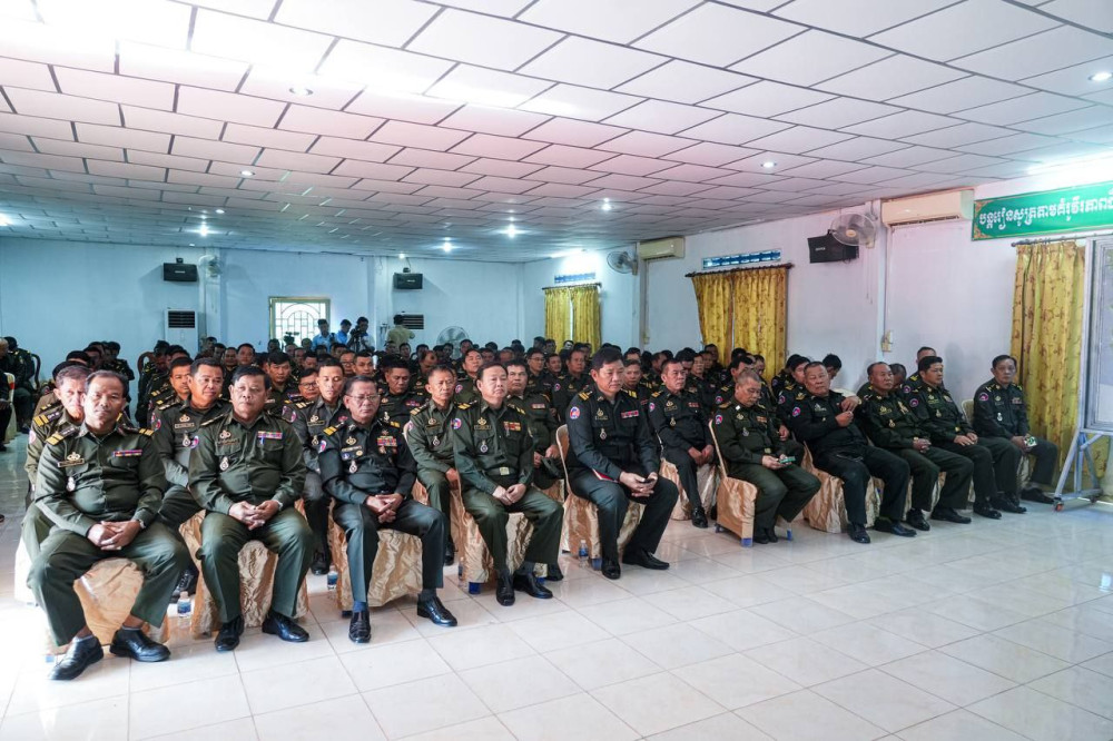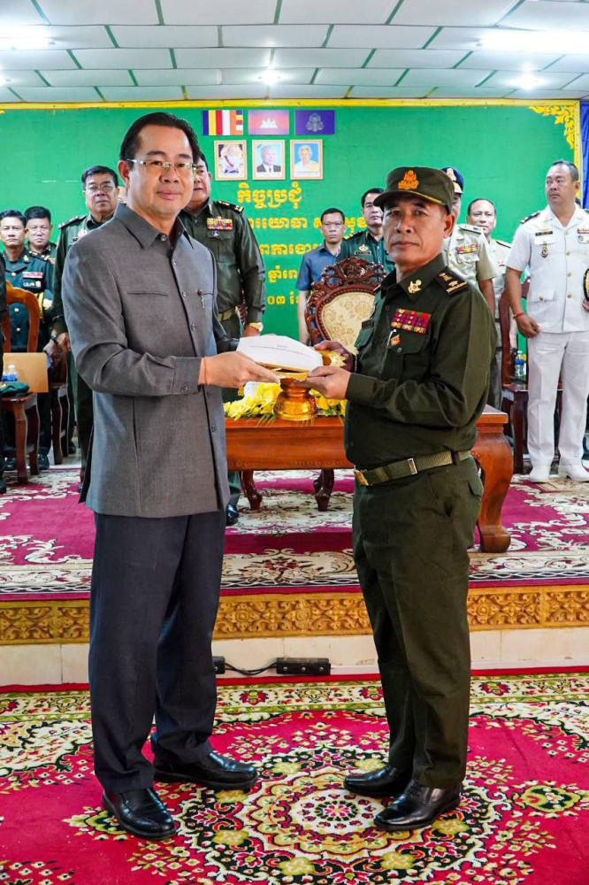 AKP ព្រះសីហនុ ថ្ងៃទី០៣ ខែមីនា ឆ្នាំ២០២៥-- ឯកឧត្តម ម៉ាង ស៊ីណេត អភិបាលនៃគណៈអភិបាលខេត្តព្រះសីហនុ និងឯកឧត្តម ឧត្តមសេនីយ៍ទោ អ៊ុយ ហៀង មេបញ្ជាការយោធភូមិភាគទី៣ បានអញ្ជើញបិទវគ្គហ្វឹកហ្វឺនបំប៉ន ពង្រឹងសមត្ថភាពយោធាដល់នាយ ទាហាន នាយទាហានរង និងពលទាហាន តំបន់ប្រតិបត្តិការសឹករងព្រះសីហនុ នាព្រឹកថ្ងៃចន្ទ ទី០៣ ខែមីនា ឆ្នាំ២០២៥។