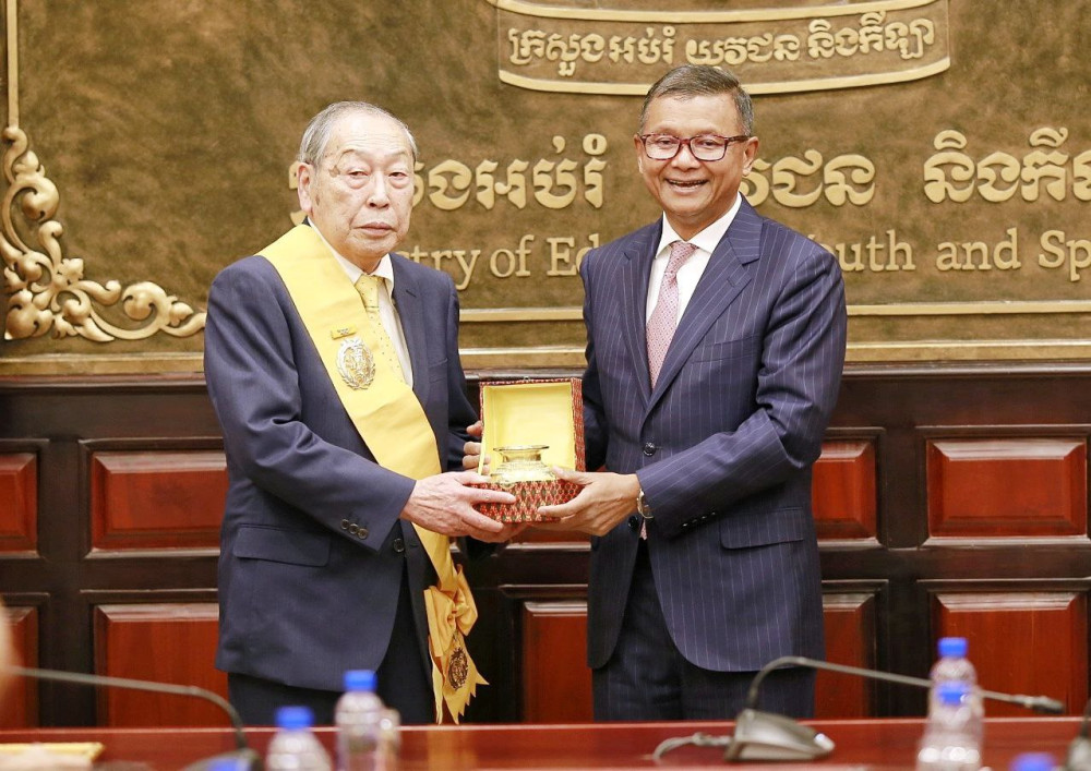 ដើម្បីជាការលើកទឹកចិត្ត និងថ្លែងអំណរគុណចំពោះសប្បុរសជនជប៉ុនក្នុងការខិតខំប្រឹងប្រែងជួយគាំទ្រដល់ប្រទេសកម្ពុជាក្នុងរយៈពេលជាច្រើនឆ្នាំកន្លងមកនេះ ក្រសួងអប់រំ យុវជន និងកីឡា បានបំពាក់គ្រឿងឥស្សរិយយសជូនលោក KEIZO NIWA ដែលជាតំណាងសប្បុរសជនជប៉ុន និងបានជូនលិខិតថ្លែងអំណរគុណដល់ភាគីសប្បុរសជនជប៉ុនផងដែរ៕
