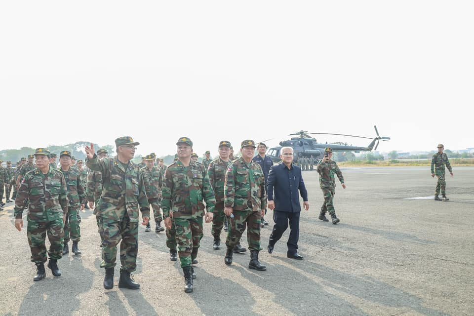 AKP ភ្នំពេញ ថ្ងៃទី០៥ ខែមីនា ឆ្នាំ២០២៥-- បន្ទាប់ពីបានចុះសួសុខទុក្ខ នាយទាហាន នាយទាហានរង និងពលទាហាន ក្នុងវរសេនាតូចស៊ើបការណ៍ យោធភូមិភាគទី៥ រួចមក ឯកឧត្តម នាយឧត្តមសេនីយ៍ ទៀ សីហា ឧបនាយករដ្ឋមន្រ្ដី រដ្ឋមន្រ្ដីក្រសួងការពារជាតិ បានបន្តដំណើរអញ្ជើញចុះសួរសុខទុក្ខ ជួបសំណេះសំណាលកងទ័ពជើងអាកាស ក្នុងឱកាសបុណ្យចូលឆ្នាំថ្មីប្រពៃណីជាតិខ្មែរ នៅមូលដ្ឋានទ័ពអាកាស ខេត្តបាត់ដំបងបន្តទៀត និងត្រួតពិនិត្យតំបន់ព្រលានយន្ដហោះខេត្តបាត់ដំបង កាលពីរសៀលថ្ងៃទី០៤ ខែមីនា ឆ្នាំ២០២៥។