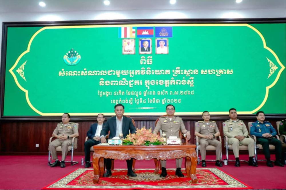 AKP កំពង់ស្ពឺថ្ងៃទី៥ ខែមីនា ឆ្នាំ២០២៥ -- ឯកឧត្តម បណ្ឌិត ជាម ច័ន្ទសោភ័ណ អភិបាលនៃគណៈអភិបាលខេត្តកំពង់ស្ពឺ បានរៀបរាប់ពីបរិយាកាសដែលនាំមកនូវការអភិវឌ្ឍ និងការទទួលការវិនិយោគជាបន្តបន្ទាប់ទាំងក្នុង និងក្រៅប្រទេស។ មានប្រសាសន៍បែបនេះក្នុងពិធី សំណេះសំណាលជាមួយ ម្ចាស់ រោងចក្រ សហគ្រាស ដែលប្រកបអាជីវកម្មនៅក្នុងខេត្តកំពង់ស្ពឺជិត៤00នាក់នាព្រឹកថ្ងៃទី៤ ខែមីនា ឆ្នាំ២០២៥ ។