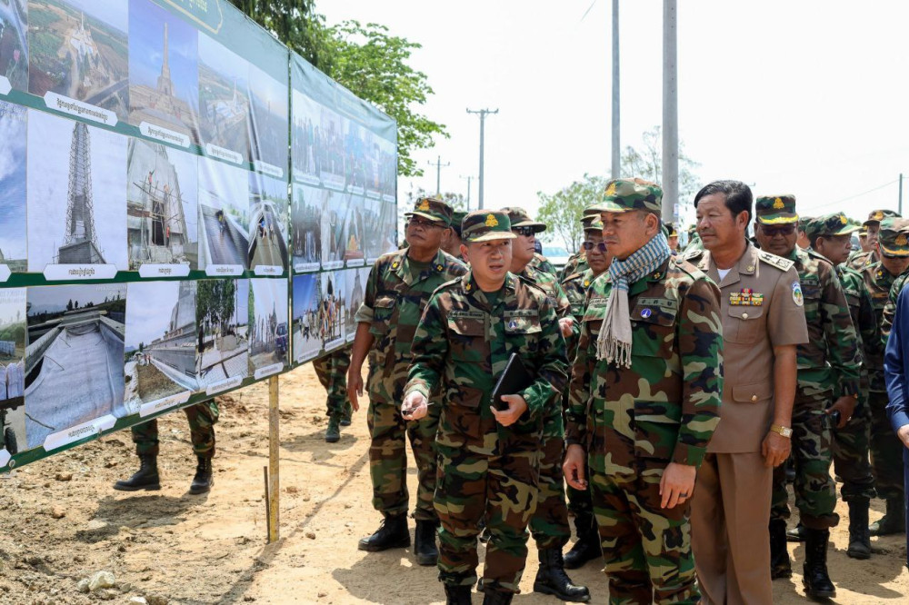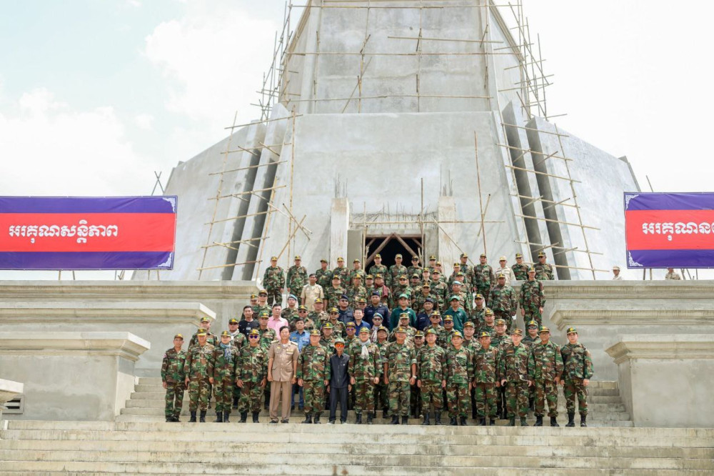 AKPភ្នំពេញថ្ងៃទី៦ខែមីនាឆ្នាំ២០២៥--ក្នុងឱកាសចុះសាកសួរសុខទុក្ខកងទ័ព នាឱកាសបុណ្យចូលឆ្នាំថ្មីប្រពៃណីជាតិខ្មែរ ឯកឧត្តម នាយឧត្តមសេនីយ៍ ទៀ សីហា ឧបនាយករដ្ឋមន្ត្រី រដ្ឋមន្ត្រីក្រសួងការពារជាតិ នាថ្ងៃទី៥ ខែមីនា ឆ្នាំ២០២៥ បានចុះពិនិត្យការដ្ឋានសាងសង់ស្តូបឈ្នះ ឈ្នះ ប៉ៃលិន។