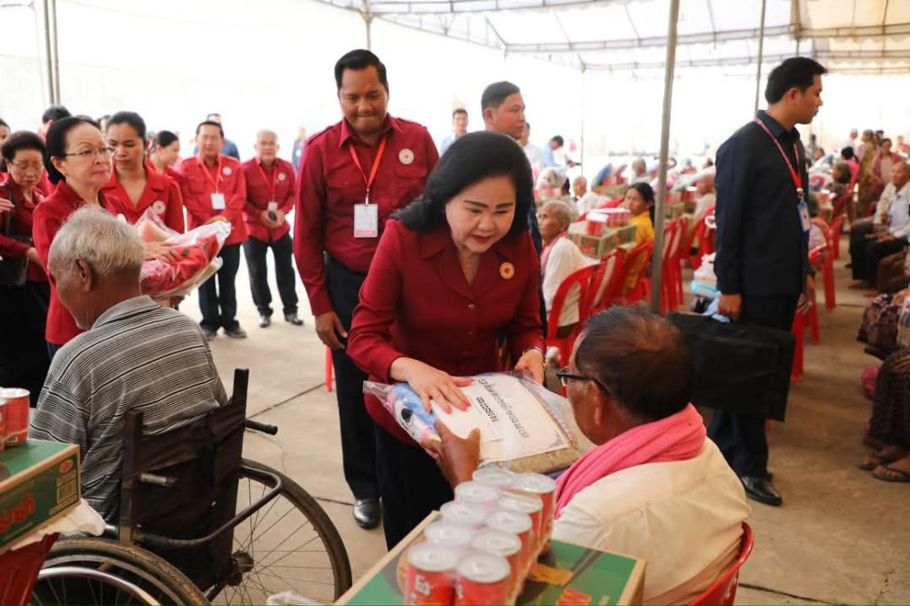 AKP ភ្នំពេញ ថ្ងៃទី០៦ ខែមីនា ឆ្នាំ២០២៥ -- សម្តេចកិត្តិព្រឹទ្ធបណ្ឌិត ប៊ុន រ៉ានី ហ៊ុនសែន ប្រធានកាកបាទក្រហមកម្ពុជា នាព្រឹកថ្ងៃព្រហស្បតិ៍ ទី០៦ ខែមីនា ឆ្នាំ២០២៥ បានអញ្ជើញបន្តជួបសំណេះសំណាលសួរសុខទុក្ខ និងចែកអំណោយមនុស្សធម៌ជូនដល់ប្រជាជនងាយរងគ្រោះបំផុតចំនួន ២.០២៥គ្រួសារទៀត មកពីស្រុកអន្លង់វែង និងស្រុកត្រពាំងប្រាសាទ ខេត្តឧត្តរមានជ័យ ដោយពិធីនេះប្រព្រឹត្តទៅនៅទីលានហាលដំឡូង ស្ថិតក្នុងភូមិទួលត្បែង ឃុំត្រពាំងប្រិយ៍ ស្រុកអន្លង់វែង ខេត្តឧត្តរមានជ័យ។