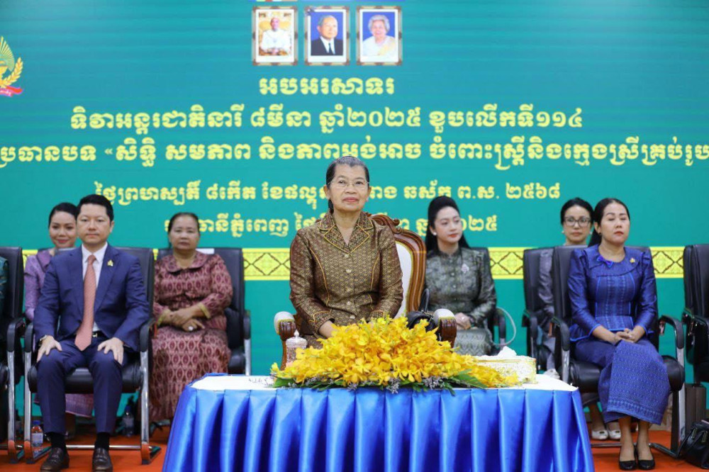 AKP ភ្នំពេញ ថ្ងៃទី០៦ ខែមីនា ឆ្នាំ២០២៥-- សម្តេចកិត្តិសង្គហបណ្ឌិត ម៉ែន សំអន ឧត្តមប្រឹក្សាផ្ទាល់ព្រះមហាក្សត្រ និងជាប្រធានសមាគមនារីកម្ពុជា ដើម្បីសន្តិភាព និងអភិវឌ្ឍន៍ បានចូលរួមក្នុងពិធីអបអរសាទរ ខួបលើកទី១១៤ ទិវាអន្តរជាតិនារី ៨មីនា ក្រោមប្រធានបទ “សិទ្ធិ សមភាព និងភាពអង់អាចចំពោះស្ត្រី និងក្មេងស្រីគ្រប់រូប” នៅទីស្តីការក្រសួងអធិការកិច្ច នាព្រឹកថ្ងៃព្រហស្បតិ៍ ទី០៦ ខែមីនា ឆ្នាំ២០២៥។