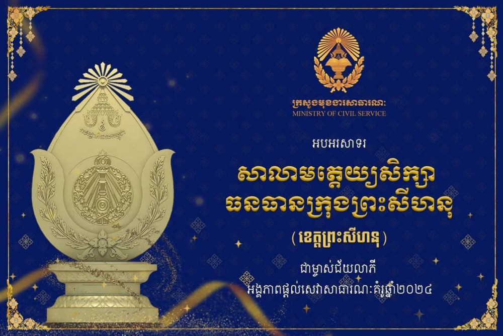 សាលាមត្តេយ្យធនធានក្រុងព្រះសីហនុបានទទួលពានរង្វាន់ចំណាត់ថ្នាក់លេខ១ ក្នុងការប្រឡងប្រណាំងអង្គភាពផ្តល់សេវាគំរូឆ្នាំ២០២៤