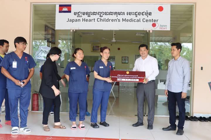 ឯកឧត្តមបណ្ឌិត ហ៊ឺ វីរៈ នាំយកថវិការបស់សប្បុរសជនក្នុងកម្មវិធីរាត្រីសមោសរសប្បុរសធម៌ជូនមជ្ឈមណ្ឌលព្យាបាលកុមារ បេះដូងជប៉ុន