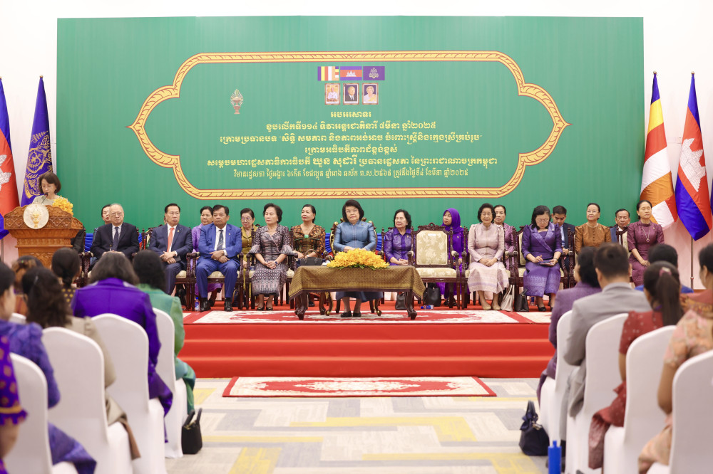សម្រាប់ការប្រារព្ធខួបលើកទី១១៤ ទិវាអន្តរជាតិនារី ៨មីនា ឆ្នាំ២០២៥ ក្រោមប្រធានបទ “សិទ្ធិ សមភាព និងភាពអង់អាចចំពោះស្ត្រី និងក្មេងស្រីគ្រប់រូប» គឺក្នុងអត្ថន័យបានបញ្ជាក់ថា ស្រ្តី គឺជាឧត្តមភរិយាដ៏ឆ្នើមប្រកបដោយព្រហ្មវិហារធម៌ គុណធម៌ យ៉ាងខ្ជាប់ខ្ជួន តែងតែយកអស់ពីកម្លាំងកាយចិត្ត ប្រាជ្ញាស្មារតី ដើម្បីបម្រើឧត្តមប្រយោជន៍ជាតិ សាសនា ព្រះមហាក្សត្រ តាមរយៈការបរិច្ចាគទ្រព្យសម្បត្តិ ដោយសទ្ធាជ្រះថ្លា និងទឹកចិត្តសប្បុរសធម៌ ដើម្បីកសាងសង្គម ជាតិឱ្យកាន់តែរីកចម្រើន និងរុងរឿងបន្ថែមទៀត។