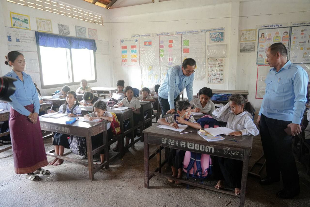 ឯកឧត្តម ម៉ាង ស៊ីណេត ចុះពិនិត្យសមិទ្ធិផល និងសំណេះសំណាលជាមួយលោកគ្រូ អ្នកគ្រូនៃសាលាបឋមសិក្សាស្ទឹងច្រាល ស្រុកកំពង់សិលា ខេត្តព្រះសីហនុ