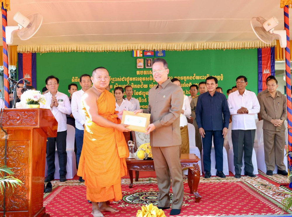 ឯកឧត្តមរដ្ឋមន្រ្តី អ៊ាង សុផល្លែត បាននាំយកបញ្ច័យ ដែលជាអំណោយដ៏ថ្លៃថ្លា របស់សម្តេចមហាបវរធិបតី ហ៊ុន ម៉ាណែត និងលោកជំទាវបណ្ឌិត ពេជ ចន្ទមុនី ហ៊ុនម៉ាណែត ប្រគេនដល់ព្រះសង្ឃ និងបានផ្តល់ជូនសម្ភារប្រើប្រាស់ និងថវិកា ដល់ លោកយាយ លោកតា លោកគ្រូ អ្នកគ្រូ សិស្សានុសិស្ស កងកម្លាំងប្រដាប់អាវុធ ក្រុមគ្រូពេទ្យ ដែលចូលរួមនាឱកាសនោះផងដែរ៕