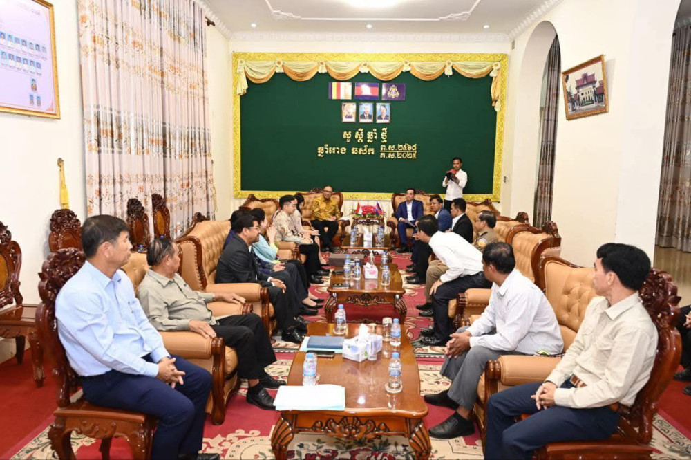 AKP កំពង់ចាម ថ្ងៃទី១១ ខែមីនា ឆ្នាំ២០២៥-- នៅសាលប្រជុំសាលាខេត្ត ឯកឧត្តម អ៊ុន ចាន់ដា អភិបាលនៃគណៈអភិបាលខេត្តកំពង់ចាម បានអនុញ្ញាតឱ្យឯកឧត្តម SANTO DARMOSUMARTO ឯកអគ្គរដ្ឋទូតនៃសាធារណរដ្ឋឥណ្ឌូនេស៊ីប្រចាំនៅព្រះរាជាណាចក្រកម្ពុជា និងគណៈប្រតិភូ ចូលជួបសម្ដែងការគួរសម និងពិភាក្សាការងារ កាលពីរសៀលថ្ងៃទី១០ ខែមីនា ឆ្នាំ២០២៥។