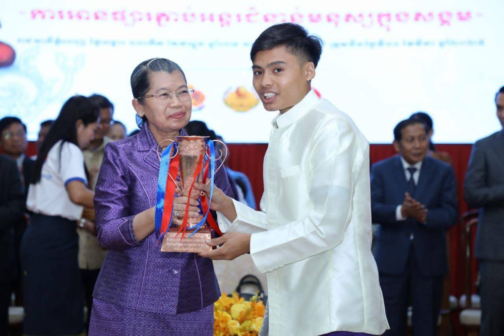 សម្តេចកិត្តិសង្គហបណ្ឌិត ម៉ែន សំអន បានអរគុណចំពោះ ឯកឧត្តមបណ្ឌិតសភាចារ្យ ហង់ជួន ណារ៉ុន ឧបនាយករដ្ឋមន្ត្រី រដ្ឋមន្ត្រីក្រសួងអប់រំ យុវជន និងកីឡា ដែលបានខិតខំបំពេញបេសសកម្មតាមតួនាទីភារកិច្ច និងជម្រុញអភិវឌ្ឍន៍វិស័យអប់រំ យុវជន និងកីឡា ជាពិសេស ចូលរួមអភិវឌ្ឍមូលធនមនុស្ស ស្របតាមកម្មវិធីនយោបាយ និងយុទ្ធសាស្ត្របញ្ចកោណដំណាក់កាលទី ១ របស់រាជរដ្ឋាភិបាលកម្ពុជា នីតិកាលទី ៧ នៃរដ្ឋសភា ក្រោមការដឹកនាំដ៏ឈ្លាសវៃរបស់ សម្តេចមហាបវរធិបតី ហ៊ុន ម៉ាណែត នាយករដ្ឋមន្ត្រី នៃកម្ពុជា។