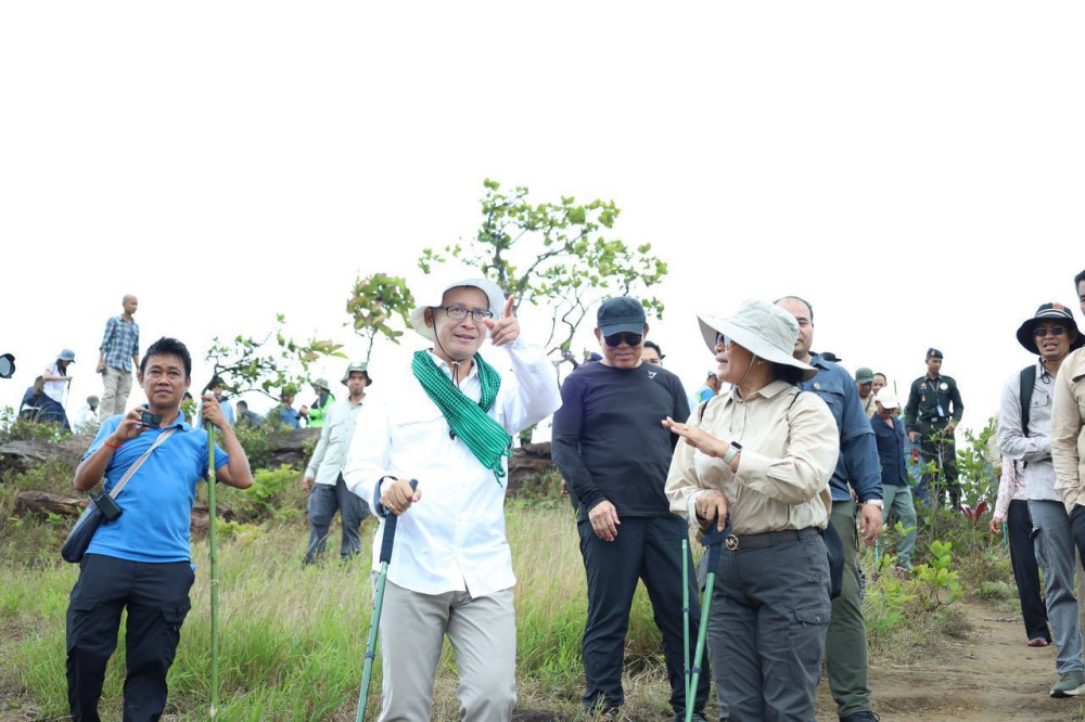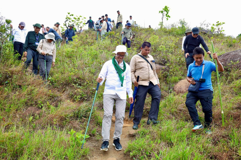 AKPភ្នំពេញថ្ងៃទី១៤ ខែមីនា ឆ្នាំ ២០២៥--រដ្ឋមន្រ្តីចំនួន២រូប ក្នុងនេះមានឯកឧត្តមបណ្ឌិត អ៊ាង សុផល្លែត រដ្ឋមន្ត្រីក្រសួងបរិស្ថាន, ឯកឧត្តម ហួត ហាក់ រដ្ឋមន្ត្រីក្រសួងទេសចរណ៍និង ឯកឧត្តម ជាម ច័ន្ទសោភ័ណ អភិបាលខេត្តកំពង់ស្ពឺ បានចុះពិនិត្យដោយផ្ទាល់លើងំបន់ខ្នងភ្នំខ្នងផ្សា ក្នុងជួរឧទ្យានជាតិភ្នំក្រវាញ ដើម្បីពិនិត្យទៅលើផែនការជំរុញគោលដៅលំហែបៃតង។