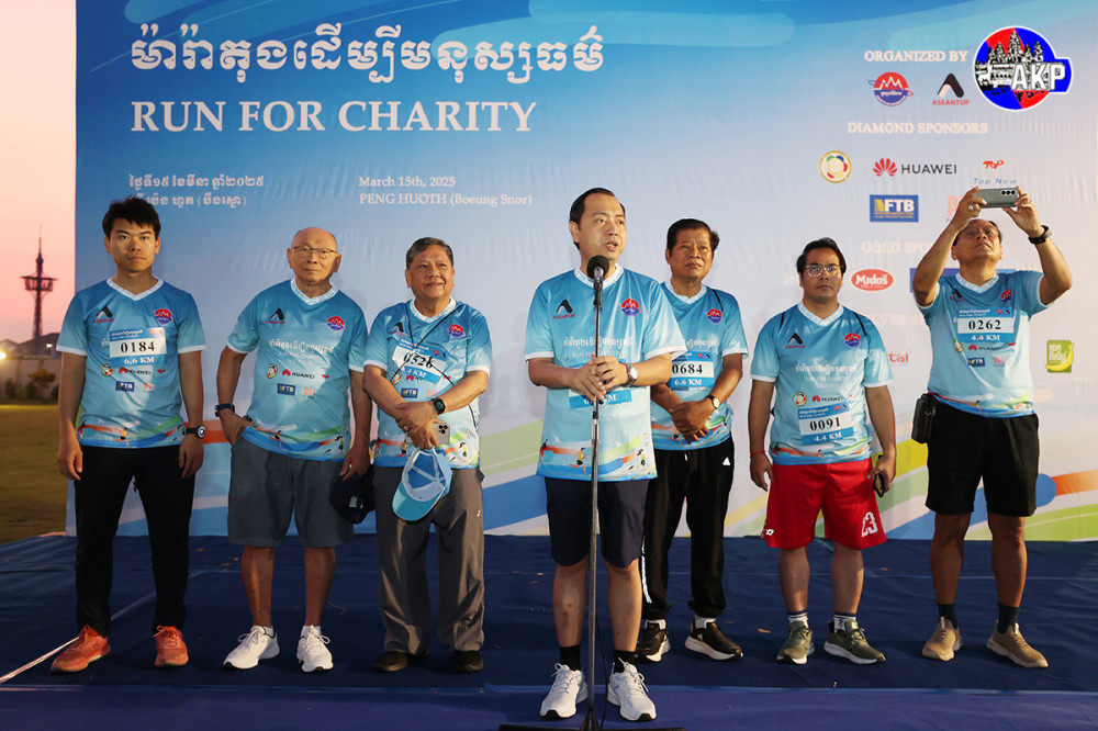 AKP ភ្នំពេញ ថ្ងៃទី១៥ ខែមីនា ឆ្នាំ២០២៥--ព្រឹត្តិការណ៍រត់ «ម៉ារ៉ាតុងដើម្បីមនុស្សធម៌» (Run for Charity) ដែលផ្តួចផ្តើមឡើងដោយឯកឧត្តម នេត្រ ភក្ត្រា រដ្ឋមន្ត្រីក្រសួងព័ត៌មាន និងសហការរៀបចំពីអង្គភាពសារព័ត៌មាន ASEAN Top បានធ្វើឡើងនៅព្រឹកថ្ងៃទី១៥ ខែមីនា ឆ្នាំ២០២៥ នេះ នៅក្នុងបរិវេណ សួន អេកូផាក (Eco Park) ហ្គ្រេនស្តា ផ្លាទីនឹម អេកូ ខូលិកសិន (Grand Star Platinum Eco Collection) នៃបុរីប៉េងហួតបឹងស្លោ ដោយប្រមូលបានថវិកាចំនួន ១០០លានរៀល សម្រាប់ប្រគល់ជូនមូលនិធិគន្ធបុប្ផាកម្ពុជា ដើម្បីសុខុមាលភាពទារក និងកុមារនៅកម្ពុជា។
