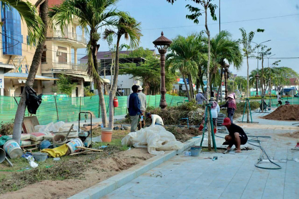 AKP កំពង់ចាម ថ្ងៃទី១៥ ខែមីនា ឆ្នាំ២០២៥ -- ឯកឧត្ដម អ៊ុន ចាន់ដា អភិបាលនៃគណៈអភិបាលខេត្តកំពង់ចាម បានដឹកនាំក្រុមការងារខេត្ត មន្ត្រីបច្ចេកទេស និងអាជ្ញាធរអ្នកពាក់ព័ន្ធ អញ្ជេីញចុះពិនិត្យវឌ្ឍនភាពនៃការជួសជុលកែលម្អសួនច្បារផ្លូវភ្លោះព្រះមុន្នីវង្សដែលស្ថិតក្នុងសង្កាត់កំពង់ចាម និងសង្កាត់បឹងកុក ក្រុងកំពង់ចាម ដែលមានប្រវែង ៥៥០ម៉ែត្រ ទទឹង១៤ម៉ែត្រ នៅព្រឹកថ្ងៃសៅរ៍ ទី១៥ ខែមីនា ឆ្នាំ២០២៥ នេះ និងបានពន្លឿនការស្ថាបនាឱ្យបានរួចរាល់ ដើម្បីការរៀបចំនៃព្រឹត្តិការណ៍សង្ក្រាន្តកំពង់ចាមឆ្នាំ២០២៥ ដែលនឹងឈានចូលមកដល់នាពេលឆាប់ៗខាងមុខ។