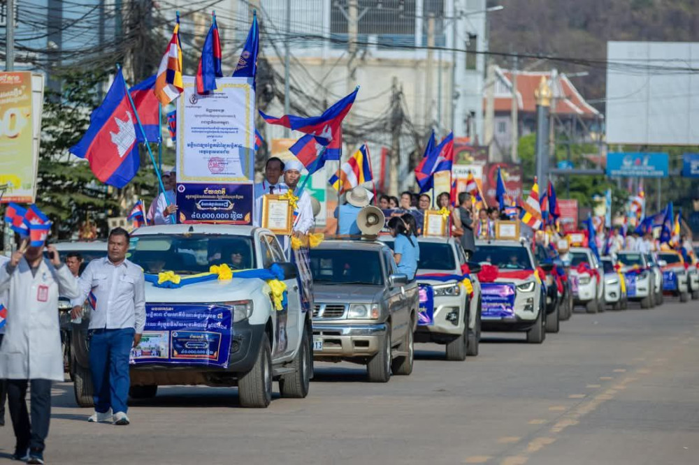 AKP បន្ទាយមានជ័យ ថ្ងៃទី១៥ ខែមីនា ឆ្នាំ២០២៤ -- រដ្ឋបាលខេត្តបន្ទាយមានជ័យ បានរៀបចំពិធីដង្ហែរក្បួនអបអរសាទរយ៉ាងអធិកអធមដល់អង្គភាពជ័យលាភីក្នុងការផ្តល់សេវាសាធារណៈគំរូ នៃវិស័យអប់រំ និងសុខាភិបាល ដែលបានទទួលជ័យលាភីពីការប្រកួតប្រជែងជាអង្គភាពផ្តល់សេវាសាធារណៈគំរូថ្នាក់ជាតិ និងទទួលបានចំណាត់ថ្នាក់ល្អចំនួន ៦អង្គភាពសម្រាប់ឆ្នាំ២០២៤ កន្លងនៅព្រឹកថ្ងៃទី១៥ ខែមីនា ឆ្នាំ២០២៥ នេះ។