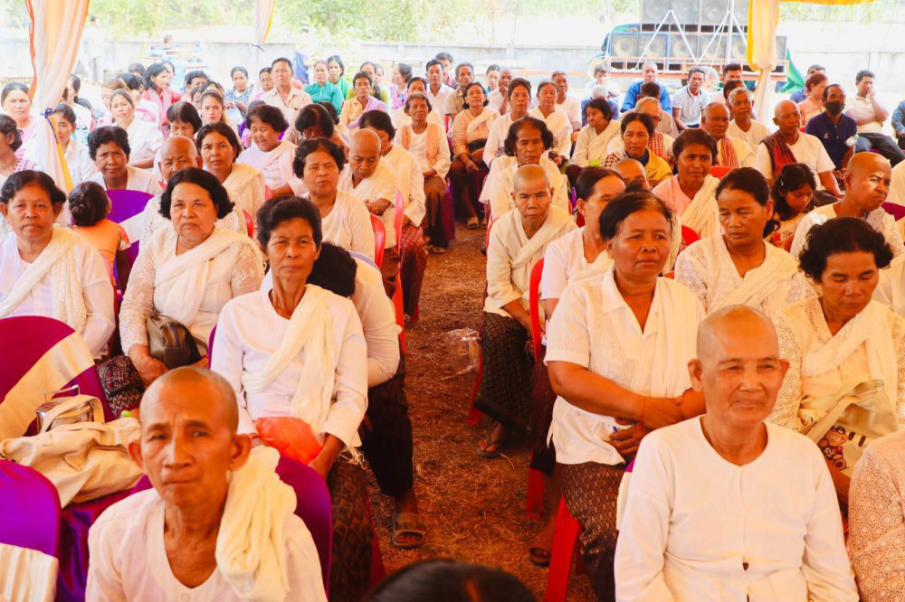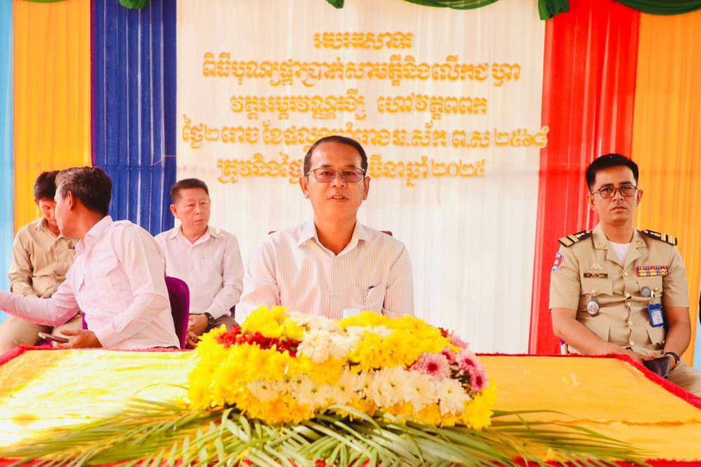 AKP កំពង់ធំ ថ្ងៃទី១៦ ខែមីនា ឆ្នាំ២០២៥ -- លោក សាយ គឹមឡម អភិបាលស្រុកស្ទោង បានមានប្រសាសន៍លើកឡើងថា សាលាឆាន់ធំស្គឹមស្កៃជាសមិទ្ធផលនៃសុខសន្តិភាព និងការចូលរួមសាមគ្គីរបស់ពុទ្ធបរិស័ទ នៅក្នុងឱកាសដែលលោកអញ្ជើញជួបសំណេះសំណាល សួរសុខទុក្ខញាតិញោមពុទ្ធបរិស័ទនៅក្នុងពិធីបុណ្យផ្កាប្រាក់សាមគ្គី និងលើកជហ្វា (ក ក្ងោក) នៃសាលាឆាន់វត្តអម្ពរវណ្ណរង្ស៊ី (វត្តពពក) ស្ថិតនៅក្នុងឃុំពពក ស្រុកស្ទោង ខេត្តកំពង់ធំកាលពីថ្ងៃទី១៥ ខែមីនា ឆ្នាំ២០២៥។