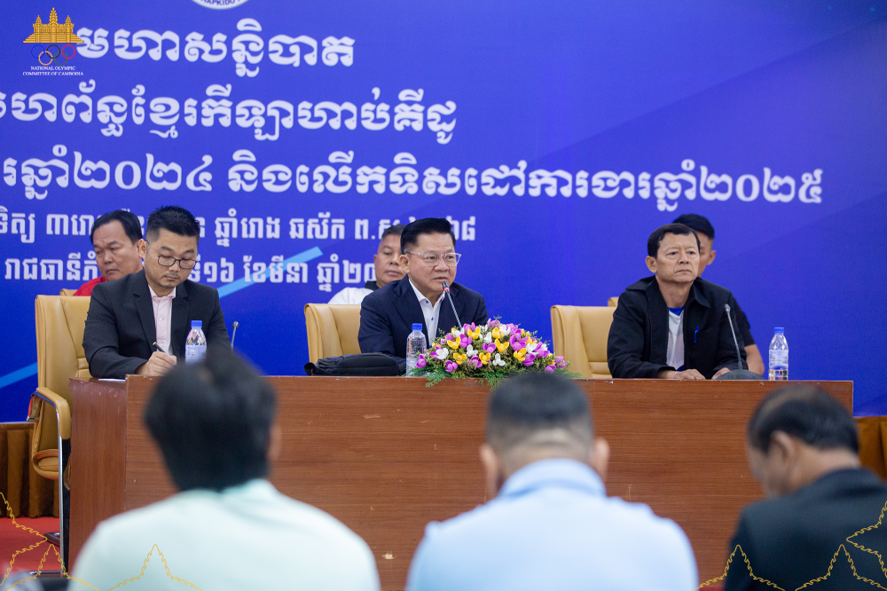 AKP ភ្នំពេញ ថ្ងៃទី១៧ ខែមីនា ឆ្នាំ២០២៥--សហព័ន្ធខ្មែរកីឡាហាប់គីដូបានរៀបចំមហាសន្និបាតបូកសរុបលទ្ធផលការងារឆ្នាំ២០២៤ និងលើកទិសដៅឆ្នាំ២០២៥ នៅទីស្នាក់ការគណៈកម្មាធិការជាតិអូឡាំពិកកម្ពុជា (NOCC) កាលពីថ្ងៃទី១៦ ខែមីនា ឆ្នាំ២០២៥ជាមួយនឹងការដាក់គោលដៅធំៗចំនួន២ សម្រាប់ឆ្នាំ២០២៥។