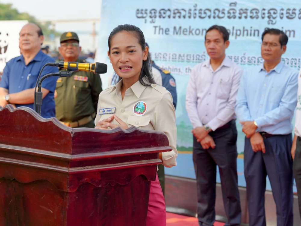 AKP ភ្នំពេញ ថ្ងៃទី១៧ ខែមីនា ឆ្នាំ២០២៥--លោកជំទាវ អ៊ឹម រចនា អនុរដ្ឋលេខាធិការក្រសួងកសិកម្ម រុក្ខាប្រមាញ់ និងនេសាទ អញ្ជើញជាគណៈអធិបតីភាព ក្នុងពិធីប្រកាសបើក «យុទ្ធនាការហែលទឹកទន្លេមេគង្គចម្ងាយ ១២០គីឡូម៉ែត្រ ដើម្បីសង្រ្គោះសត្វផ្សោតកម្ពុជា»។