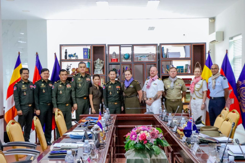 AKP ភ្នំពេញ ថ្ងៃទី១៧ ខែមីនា ឆ្នាំ២០២៥ -- ឯកឧត្តម ឧត្តមសេនីយ៍ទោ សែម តេនា អគ្គនាយកស្តីទីមជ្ឈមណ្ឌលជាតិរក្សាសន្តិភាព បានវាយតម្លៃខ្ពស់ចំពោះកិច្ចសហប្រតិបត្តិការដ៏ស្អិតល្មួតរវាងកងទ័ពនៃប្រទេសទាំងពីរ កម្ពុជា-អូស្ត្រាលី ដែលតាមរយៈកិច្ចសហប្រតិបត្តិការនេះកងទ័ពកម្ពុជាទទួលបាននូវវគ្គហ្វឹកហ្វឺនជាច្រើនពីអូស្ត្រាលី។ ការវាយតម្លៃរបស់ឯកឧត្តម ឧត្តមសេនីយ៍ទោ សែម តេនា ដូចនេះធ្វើឡើងក្នុងជំនួបពិភាក្សាការងារជាមួយលោកស្រីឧត្តមសេនីយ៍ត្រី Jennifer Harris មេបញ្ជាការឥណ្ឌូប៉ាស៊ីហ្វិក ក្រសួងការពារជាតិអូស្ត្រាលី នៅមជ្ឈមណ្ឌលជាតិរក្សាសន្តិភាព នាព្រឹកថ្ងៃទី១៧ ខែមីនា ឆ្នាំ២០២៥។
