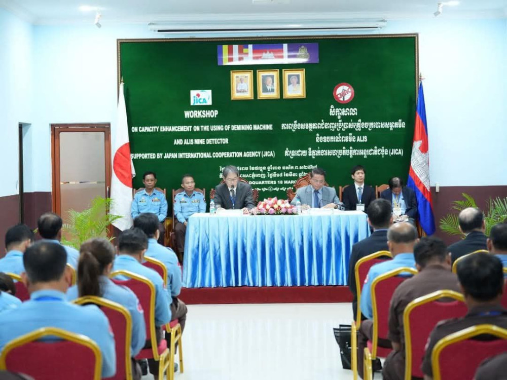 AKP ភ្នំពេញ ថ្ងៃទី១៨ ខែមីនា ឆ្នាំ២០២៥ -- អង្គភាពមណ្ឌលកំចាត់មីនកម្ពុជា(CMAC)បានបើកសិក្ខាសាលាស្តីពីការពង្រឹងសមត្ថភាពរបស់មន្ត្រីជំនាញអង្គភាពCMAC លើជំនាញប្រើប្រាស់គ្រឿងចក្របោសសម្អាតមីន និងម៉ាស៊ីនរាវមីនALIS គាំទ្រដោយJICA។