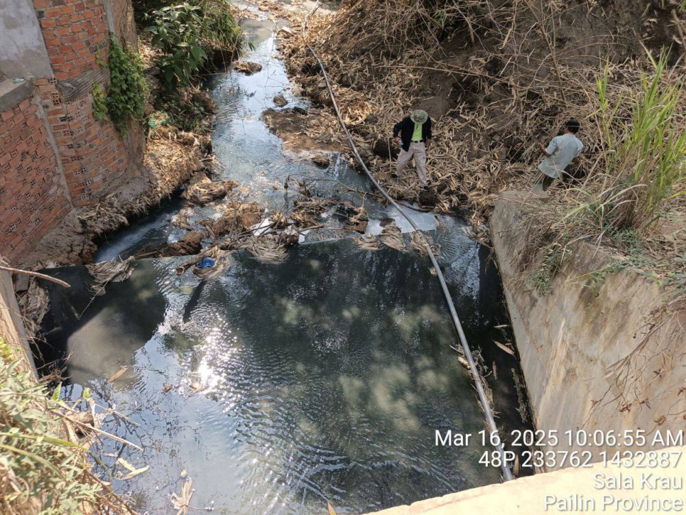 សូមបញ្ជាក់ថាតបតាមបទបញ្ជាក់របស់ឯកឧត្តមបណ្ឌិត អ៊ាង សុផល្លែត និងការអនុវត្តច្បាប់ បទដ្ឋានគតិយុត្តជាធរមានរបស់ព្រះរាជាណាចកម្ពុជា ក្រុមការងារជំនាញក្រសួងបរិស្ថាន សហការជាមួយមន្ទីរបរិស្ថានខេត្តប៉ៃលិន អាជ្ញាធរមូលដ្ឋាន និងប្រជាពលរដ្ឋ ព្រមទាំងអ្នកសារព័ត៌មាន បានកំពុងចុះដល់ទីតាំងផ្ទាល់ យកសំណាកទឹក នៅតាមទីតាំងមួយចំនួន និងអនុវត្តវិធានការច្បាប់ជាបន្ទាន់ ជៀសវាងបង្កផលប៉ះពាល់ដល់បរិស្ថាន សង្គម ជាពិសេសសុខភាព និងការរស់នៅរបស់ប្រជាពលរដ្ឋ។
