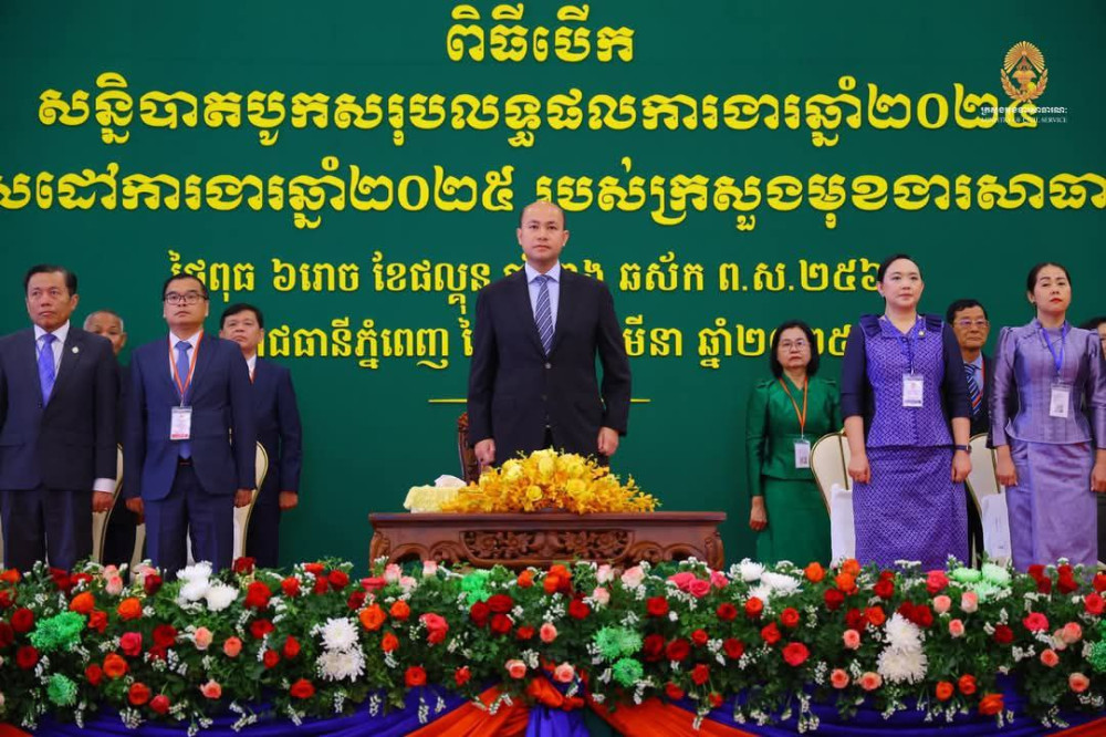 AKP ភ្នំពេញ ថ្ងៃទី១៩ ខែមីនា ឆ្នាំ២០២៥--ឯកឧត្តម ហ៊ុន ម៉ានី ឧបនាយករដ្ឋមន្ត្រី រដ្ឋមន្ត្រីក្រសួងមុខងារសាធារណៈ បានអញ្ជើញជាអធិបតីដ៏ខ្ពង់ខ្ពស់ក្នុងពិធីបើក «សន្និបាតបូកសរុបលទ្ធផលការងារឆ្នាំ២០២៤ និងលើកទិសដៅការងារឆ្នាំ២០២៥ របស់ក្រសួងមុខងារសាធារណៈ» នៅ ដឺ ព្រេមៀ សេនធ័រ សែនសុខ រាជធានីភ្នំពេញ។
