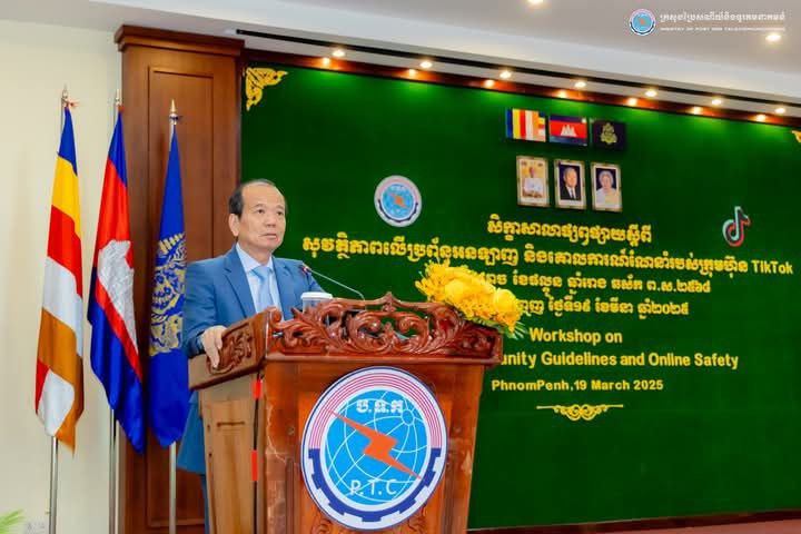 AKP ភ្នំពេញ ថ្ងៃទី១៩ ខែមីនា ឆ្នាំ២០២៥ -- ក្រសួងប្រៃសណីយ៍ និងទូរគមនាគមន៍ នាថ្ងៃទី១៩ ខែមីនា ឆ្នាំ២០២៥ បានសហការជាមួយក្រុមហ៊ុន TikTok រៀបចំសិក្ខាសាលាផ្សព្វផ្សាយស្ដីពីសុវត្ថិភាពលើប្រព័ន្ធអនឡាញ និងគោលការណ៍ណែនាំរបស់ក្រុមហ៊ុន TikTok ក្រោមអធិបតីភាពឯកឧត្តម ជា វ៉ាន់ដេត រដ្ឋមន្ត្រីក្រសួងប្រៃសណីយ៍ និងទូរគមនាគមន៍ និងមានការអញ្ជើញចូលរួមពីឯកឧត្តម លោកជំទាវ ជាថ្នាក់ដឹកនាំក្រសួង និងតំណាងក្រសួង ស្ថាប័ន លោកស្រី Chanida Klyphum ប្រធានផ្នែកគោលនយោបាយសាធារណៈរបស់ក្រុមហ៊ុន TikTok ប្រចាំអាស៊ីអាគ្នេយ៍ និងសហការី ព្រមទាំងអ្នកសារព័ត៌មាន អ្នកផលិតមាតិកា និងសាធារណជន សរុបប្រមាណ ២៥០នាក់។