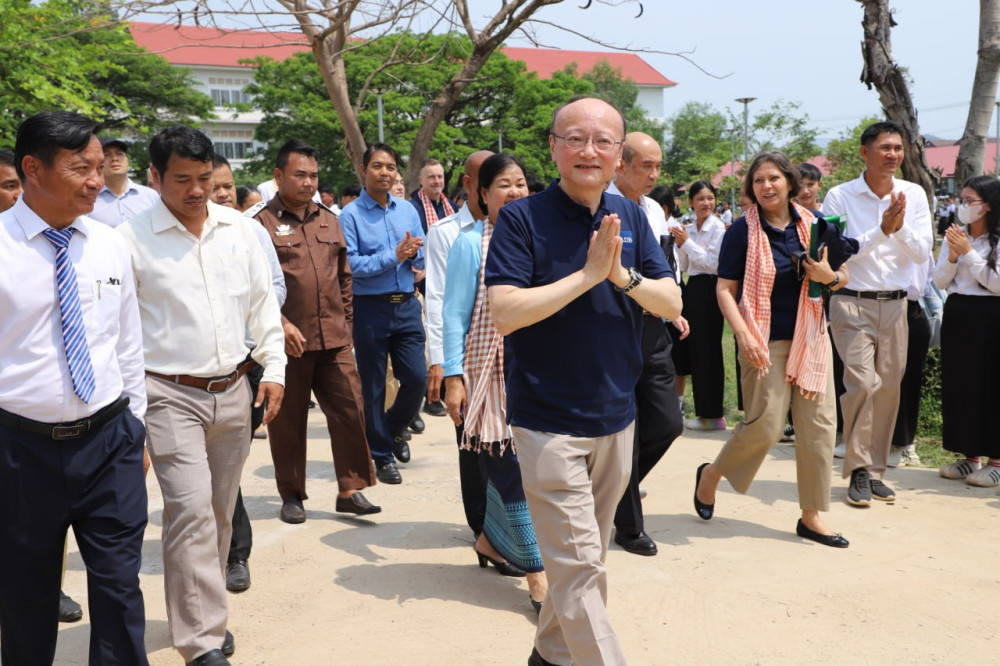 AKP ភ្នំពេញ ថ្ងៃទី២០ ខែមីនា ឆ្នាំ២០២៥-- លោក ម៉ាសាតូ កាន់ដា ប្រធានធនាគារអភិវឌ្ឍន៍អាស៊ី នៅរសៀលថ្ងៃទី១៩ ខែមីនា ឆ្នាំ២០២៥ បានចុះទស្សនកិច្ចនៅវិទ្យាល័យ ហ៊ុន សែន ចំការដូង ខេត្តកែប ដែលជាសាលាមធ្យមសិក្សាធនធានគោលដៅមួយក្រោមការគាំទ្ររបស់គម្រោងអភិវឌ្ឍន៍វិស័យអប់រំមធ្យមសិក្សាទុតិយភូមិទី២ ដែលដំណើរទស្សនកិច្ចនេះធ្វើឡើងក្នុងគោលបំណងជួបជាមួយនាយកសាលា គ្រូបង្រៀន និងសិស្សានុសិស្ស ដើម្បីស្វែងយល់ពីផលជះ និងសមិទ្ធផលដែលសម្រេចបានពីកម្មវិធីអភិវឌ្ឍន៍វិស័យអប់រំមធ្យមសិក្សាទុតិយភូមិទី២ ដែលផ្តល់ហិរញ្ញប្បទានដោយធនាគារអភិវឌ្ឍន៍អាស៊ី។