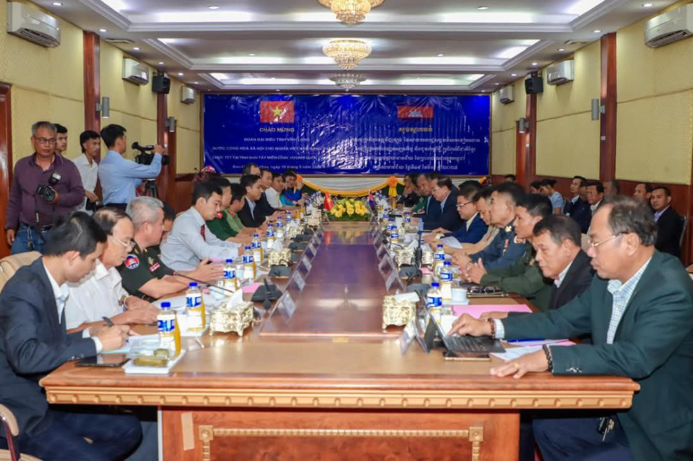 AKP បន្ទាយមានជ័យ ថ្ងៃទី២០ ខែមីនា ឆ្នាំ២០២៥--ឯកឧត្តម ប្លែក វ៉ារី ប្រធានក្រុមប្រឹក្សាខេត្ត និងឯកឧត្តម អ៊ុំ រាត្រី អភិបាលនៃគណៈភិបាលខេត្តបន្ទាយមានជ័យ បានទទួលស្វាគមន៍គណៈប្រតិភូខេត្តវិញឡុងនៃសាធារណរដ្ឋសង្គមនិយមវៀតណាម ដឹកនាំដោយឯកឧត្តម ង្វៀន ថាញ់វ៉ាន់ អគ្គកុងស៊ុលនៃស្ថានអគ្គកុងស៊ុលសាធារណរដ្ឋសង្គមនិយមវៀតណាមប្រចាំខេត្តបាត់ដំបង និងឯកឧត្តម ង្វៀន មិញយុង អនុប្រធានក្រុមប្រឹក្សាខេត្តវិញឡុង និងជាប្រធានប្រតិភូ អញ្ជើញមកទស្សនកិច្ច និងជូនពរឆ្នាំថ្មី ដល់ថ្នាក់ដឹកនាំមន្ត្រីរាជការប្រជាពលរដ្ឋនៃខេត្តបន្ទាយមានជ័យ ដោយមានការចូលរួមពីអភិបាលរងខេត្ត មន្ទីរ អង្គភាព ស្ថាប័នពាក់ព័ន្ធ មេបញ្ជាការកងកម្លាំងគ្រប់ជាន់ថ្នាក់នៅសាលប្រជុំ ខ សាលាខេត្តបន្ទាយមានជ័យ កាលពីរសៀលថ្ងៃទី១៩ ខែមីនា ឆ្នាំ២០២៥។