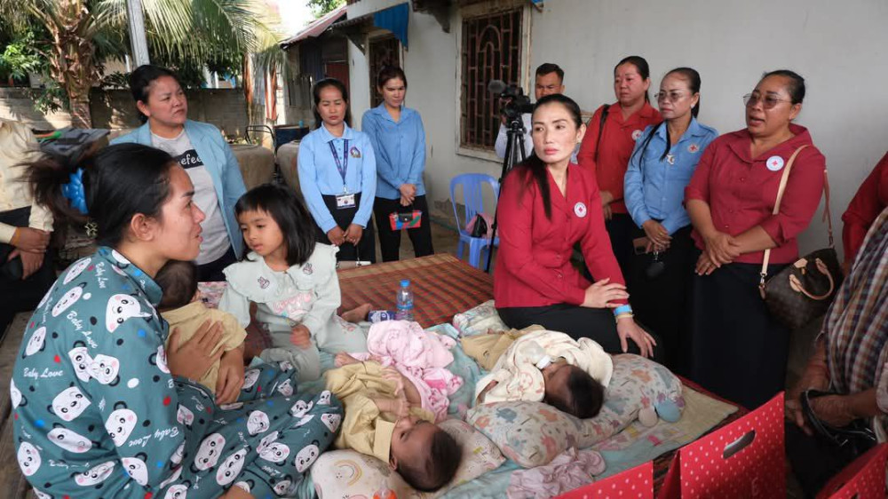 លោកជំទាវ ម៉េង វ៉ាន់ដានីន អញ្ជើញចុះសួរសុខទុក្ខ និងនាំយកអំណោយមនុស្សធម៌ជូនស្រ្តីក្រីក្រប្រសូតបានបុត្រភ្លោះ៣នាក់