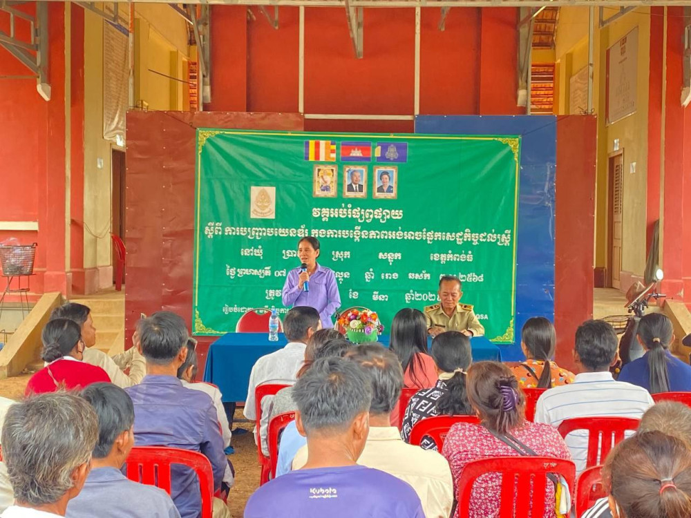 AKP កំពង់ធំ ថ្ងៃទី២១ ខែមីនា ឆ្នាំ២០២៥--មន្ទីរកិច្ចការនារីខេត្តកំពង់ធំបានសហការជាមួយគម្រោងQSA បើកវគ្គអប់រំផ្សព្វផ្សាយស្ដីពីការបញ្ជ្រាបយេនឌ័រក្នុងការបង្កើនភាពអង់អាចផ្នែកសេដ្ឋកិច្ចដល់ស្ត្រីនៅស្រុកសន្ទុក ខេត្តកំពង់ធំ កាលពីថ្ងៃទី២០ ខែមីនា ឆ្នាំ២០២៥ ក្រោមអធិបតីភាពលោកស្រី ស៊ិន ស៊ីផាន ប្រធានមន្ទីរកិច្ចការនារីខេត្តកំពង់ធំ ដោយមានការអញ្ជើញចូលរួមពីលោកស្រី ឡេង សុក្ខី អភិបាលរងស្រុកសន្ទុក មន្រ្តីមន្ទីរកិច្ចការនារីខេត្តការិយាល័យសង្គមកិច្ច និងសុខុមាលភាពសង្គមថ្នាក់ស្រុក ក្រុមប្រឹក្សាឃុំ មេភូមិ អនុភូមិសមាជិកភូមិ និងប្រជាពលរដ្ឋឃុំកំពង់ថ្ម និងឃុំប្រាសាទស្រុកសន្ទុក ខេត្តកំពង់ធំ។ វគ្គអប់រំផ្សព្វផ្សាយនេះរៀបចំឡើងនៅពីរទីតាំងផ្សេងគ្នាពេលព្រឹកស្ថិតបរិវេណសាលាឃុំកំពង់ថ្ម មានប្រជាពលរដ្ឋចូលរួមសរុប១០៦នាក់ (ស្រី៦៩នាក់) និងពេលរសៀលនៅបរិវេណសាលាឃុំប្រាសាទ មានប្រជាពលរដ្ឋចូលរួមសរុប១០៤នាក់ (ស្រី៦៧នាក់)។