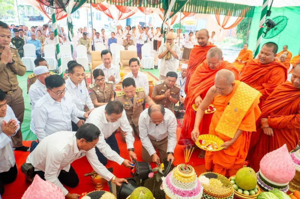 AKP បន្ទាយមានជ័យ ថ្ងៃទី២៥ ខែមីនា ឆ្នាំ២០២៥-- ឯកឧត្តម ប្លែក វ៉ារី ប្រធានក្រុមប្រឹក្សាខេត្ត និងឯកឧត្តម អ៊ុំ រាត្រី អភិបាលខេត្តបន្ទាយមានជ័យ បានអញ្ជើញជាអធិបតីភាពក្នុងពិធីបញ្ចុះបឋមសិលាសាងសង់អគារផ្នែកជំងឺទូទៅថ្មីមួយខ្នង នៅបរិវេណមន្ទីរពេទ្យបង្អែកស្រុកព្រះនេត្រព្រះ កាលពីរសៀលថ្ងៃចន្ទ ទី២៤ ខែមីនា ឆ្នាំ២០២៥នេះ ដើម្បីបំពេញសេចក្តីត្រូវការសម្រាប់ពិនិត្យព្យាបាលជំងឺជូនប្រជាពលរដ្ឋតំបន់ជនបទនេះឱ្យកាន់តែមានភាពប្រសើរឡើងថែមទៀតនោះ។