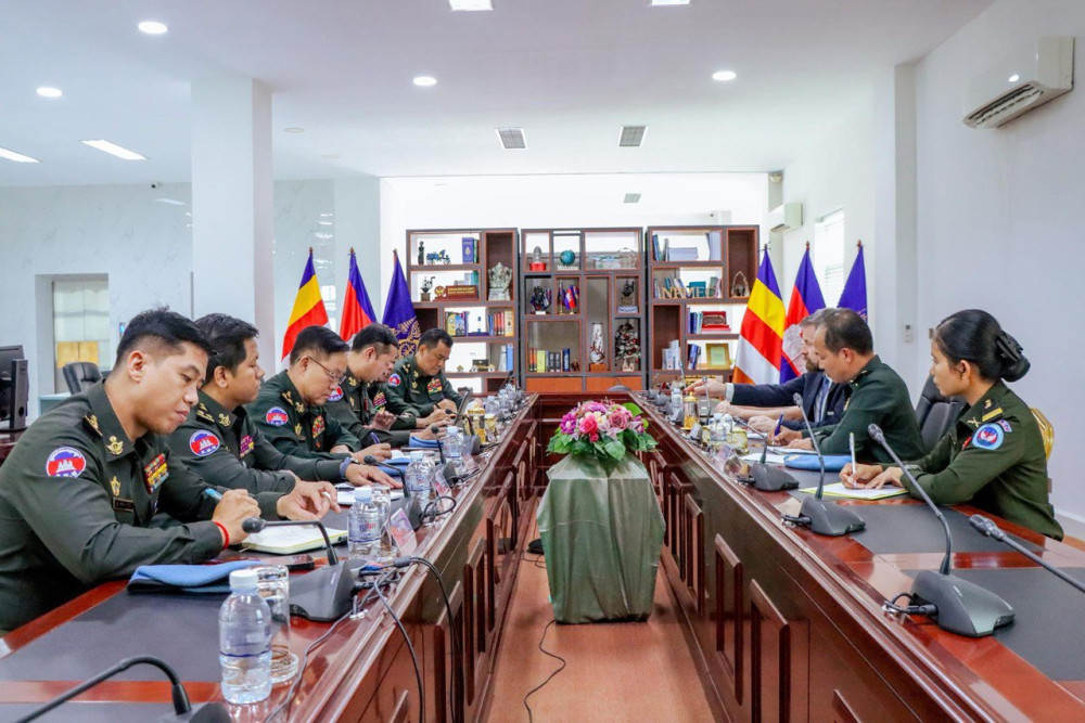 AKP ភ្នំពេញ ថ្ងៃទី២៥ ខែមីនា ឆ្នាំ២០២៥-- នៅមជ្ឈមណ្ឌលជាតិរក្សាសន្តិភាព រសៀលថ្ងៃទី២៤ ខែមីនា ឆ្នាំ២០២៥ ឯកឧត្តម ឧត្តមសេនីយ៍ទោ សែម រតនា អនុប្រធានទី១គណៈកម្មាធិការជាតិ និងជាអគ្គនាយកស្តីទីមជ្ឈមណ្ឌលជាតិរក្សាសន្តិភាព បានទទួលជួបពិភាក្សាការងារជាមួយលោក Edgar Doerig ប្រធានតំណាងអង្គការអន្តរជាតិនៃភាសាបារាំង (ហ្វ្រង់កូហ្វូនី) សម្រាប់តំបន់អាស៊ីប៉ាស៊ីហ្វិក ដោយក្នុងជំនួបនេះឯកឧត្តម ឧត្តមសេនីយ៍ទោ សែម រតនា បានវាយតម្លៃខ្ពស់ចំពោះទំនាក់ទំនងដ៏ល្អរវាងហ្វ្រង់កូហ្វូនីជាមួយនឹងកម្ពុជា ដែលហ្វ្រង់កូហ្វូនី គឺជាអង្គការអន្តររដ្ឋាភិបាល និងមានរដ្ឋចំនួន៩៣ ឬរដ្ឋាភិបាលជាអតីតទឹកដីនៃអាណានិគមបារាំងជាសមាជិក។