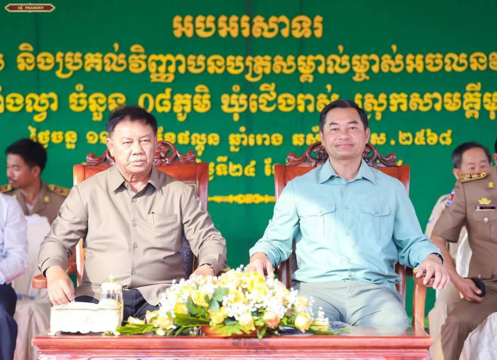 AKP កំពង់ស្ពឺ ថ្ងៃទី២៥ ខែមីនា ឆ្នាំ២០២៥-- ឯកឧត្តមបណ្ឌិត ជាម ច័ន្ទសោភ័ណ អភិបាលនៃគណៈអភិបាលខេត្តកំពង់ស្ពឺ កាលពីថ្ងៃទី២៤ ខែមីនា ឆ្នាំ២០២៥ បានអញ្ជើញជាអធិបតីភាពក្នុងពិធីជួបសំណេះសំណាល និងប្រគល់វិញ្ញាបនបត្រសម្គាល់ម្ចាស់អចលនវត្ថុ (បណ្ណកម្មសិទ្ធិ) ជូនប្រជាពលរដ្ឋចំនួន៦ភូមិ ក្នុងឃុំពាំងល្វា និង៨ភូមិ ក្នុងឃុំជើងរាស់ ស្រុកសាមគ្គីមុនីជ័យ ចំនួន៨៩៤០ គ្រួសារ នៅបរិវេណសាលាស្រុកសាមគ្គីមុនីជ័យ ខេត្តកំពង់ស្ពឺ។