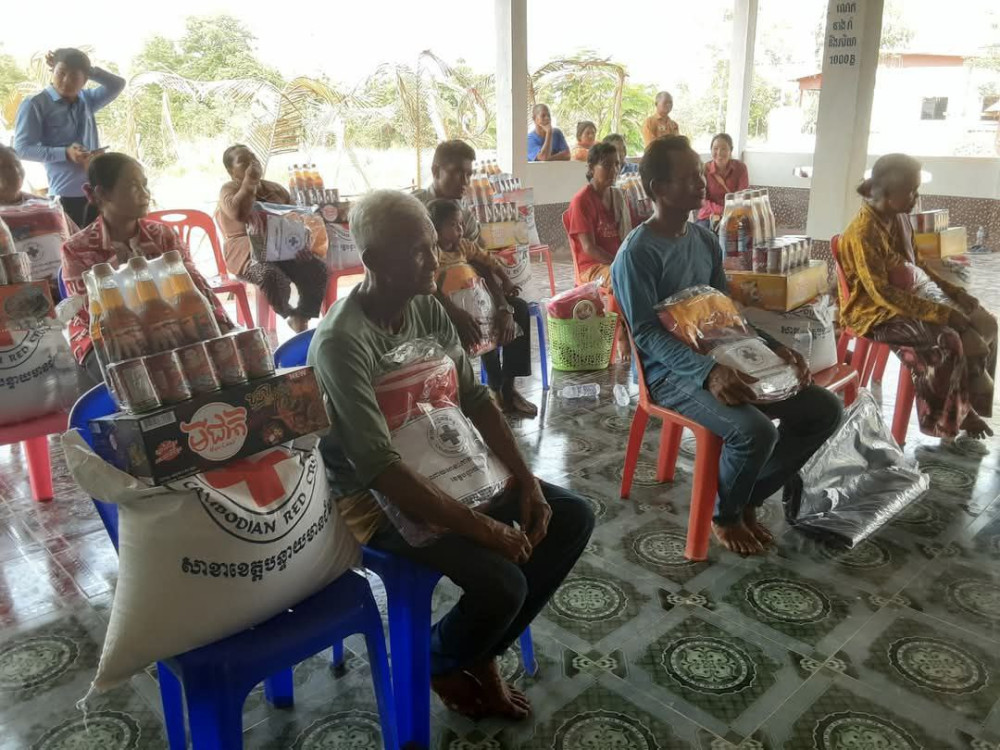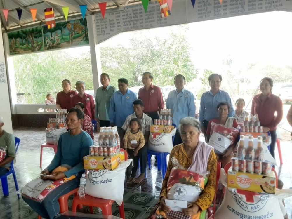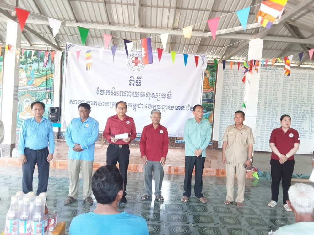 ប្រជាពលរដ្ឋរងគ្រោះដោយសារខ្យល់កន្ត្រាក់ក្នុងស្រុកថ្មពួកទទទួលបានអំណោយពីសាខាកាកបាទក្រហមកម្ពុជាខេត្តបន្ទាយមានជ័យ