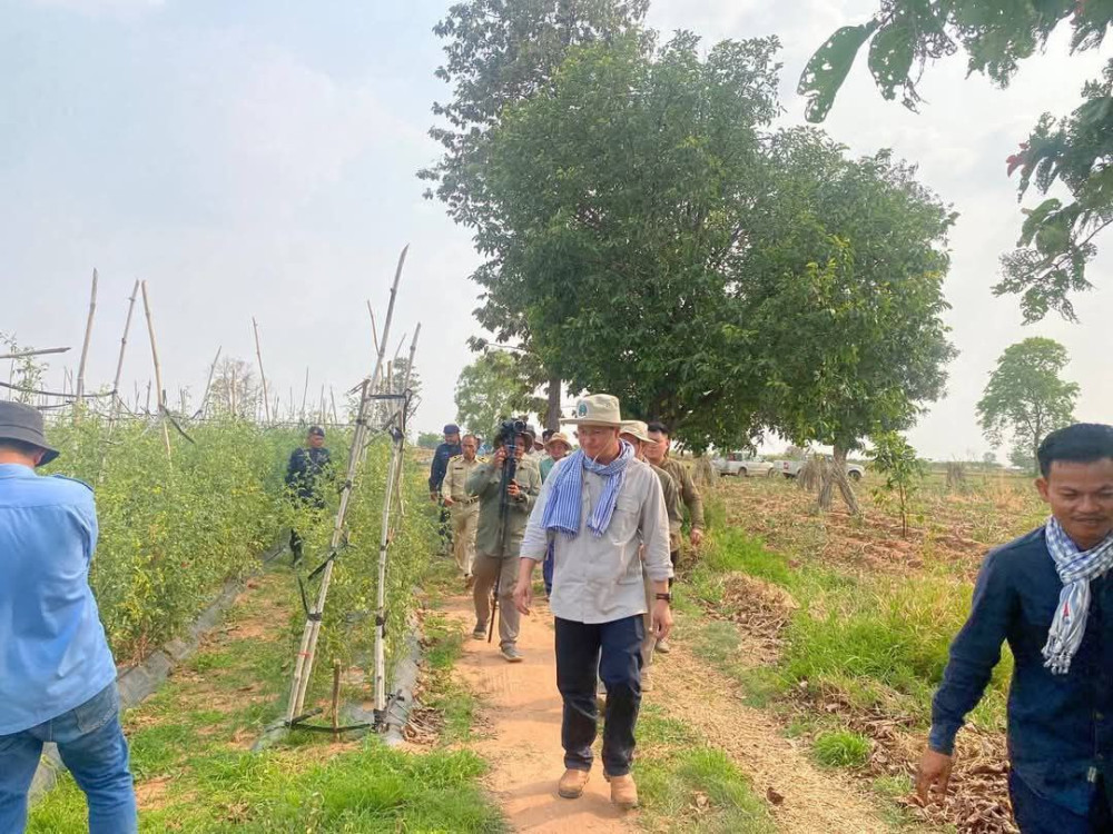 បន្ទាប់មក ឯកឧត្តមរដ្ឋមន្ត្រីបានបន្តដំណើរចុះសួរសុខទុក្ខ និងលើកទឹកចិត្តបងប្អូនកសិករដែលជាសមាជិកនៃសហគមន៍កសិកម្មប្រាសាទបន្ទាយឆ្មារ នៅចំការរបស់កសិករ ណាំ រួស ផងដែរ។