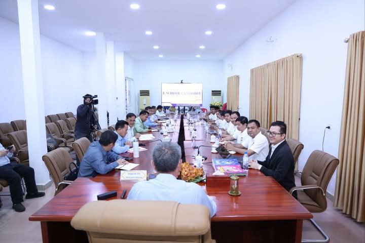 AKP កណ្ដាល ថ្ងៃទី២៧ ខែមីនា ឆ្នាំ២០២៥-- នៅសាលប្រជុំសាលាខេត្តកណ្ដាល ឯកឧត្តម គួច ចំរើន អភិបាលខេត្តកណ្ដាល នារសៀលថ្ងៃទី២៦ ខែមីនា ឆ្នាំ២០២៥ បានអនុញ្ញាតឱ្យក្រុមការងារ E-School Cambodia ចូលជួបសម្តែងការគួរសម និងធ្វើបទបង្ហាញអំពីកម្មវិធីសិក្សាតាម Online App E-School Cambodia និងថ្នាក់បង្រៀនកុំព្យូទ័រដោយឥតគិតថ្លៃ ក្នុងក្របខ័ណ្ឌខេត្តកណ្តាល។